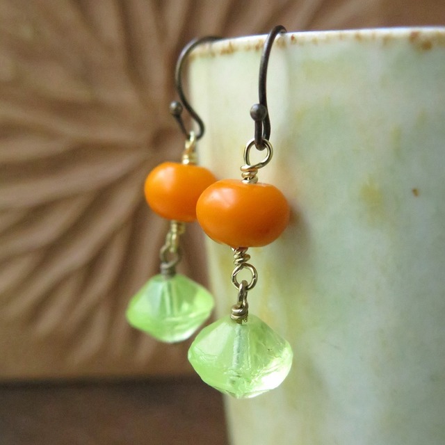 ウランガラス + ボヘミア玉 蜜柑 ピアス&イヤリング