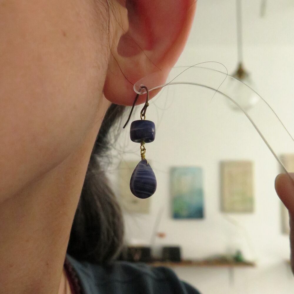 深い青が落ち着いた印象のピアス&イヤリングは、色々な装いに合わせやすいですね。