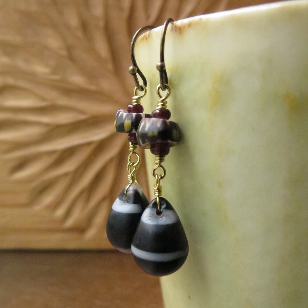 ウェディングビーズ 雫 黒×白 + ブラックシェブロン ピアス&イヤリング