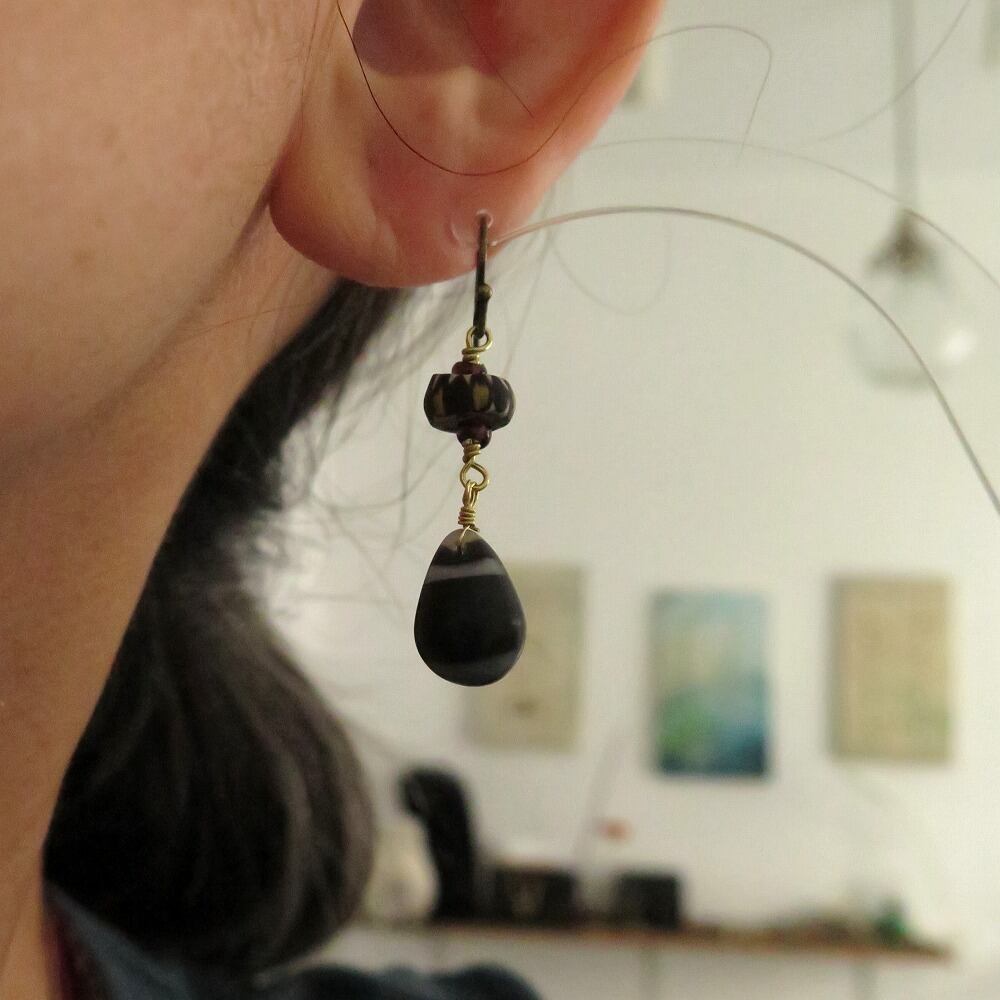 なんとも個性的な玉を並べた、個性的なピアス&イヤリングです。