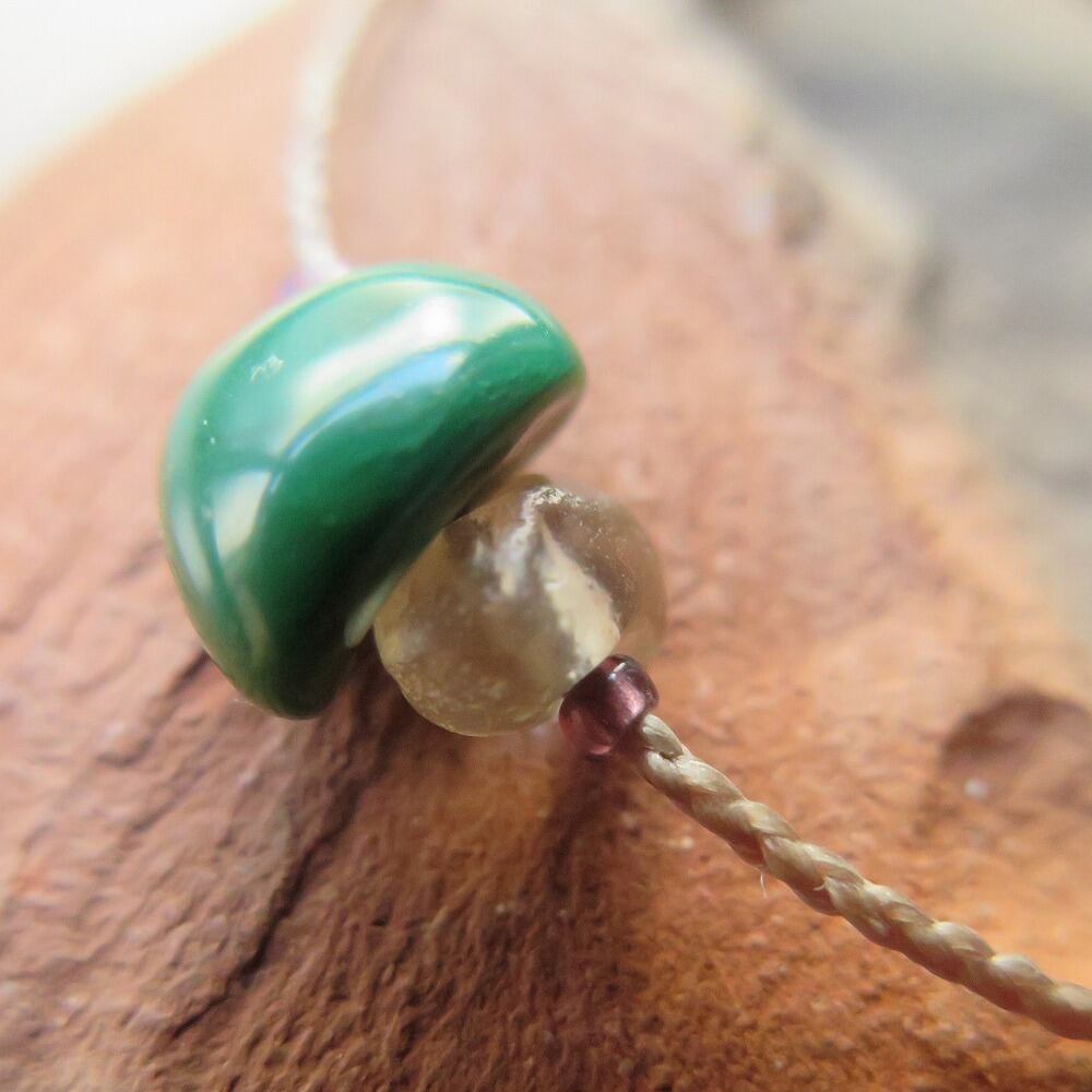 紐の先端は、透明感のある紫のヴェネチアンシードビーズです。