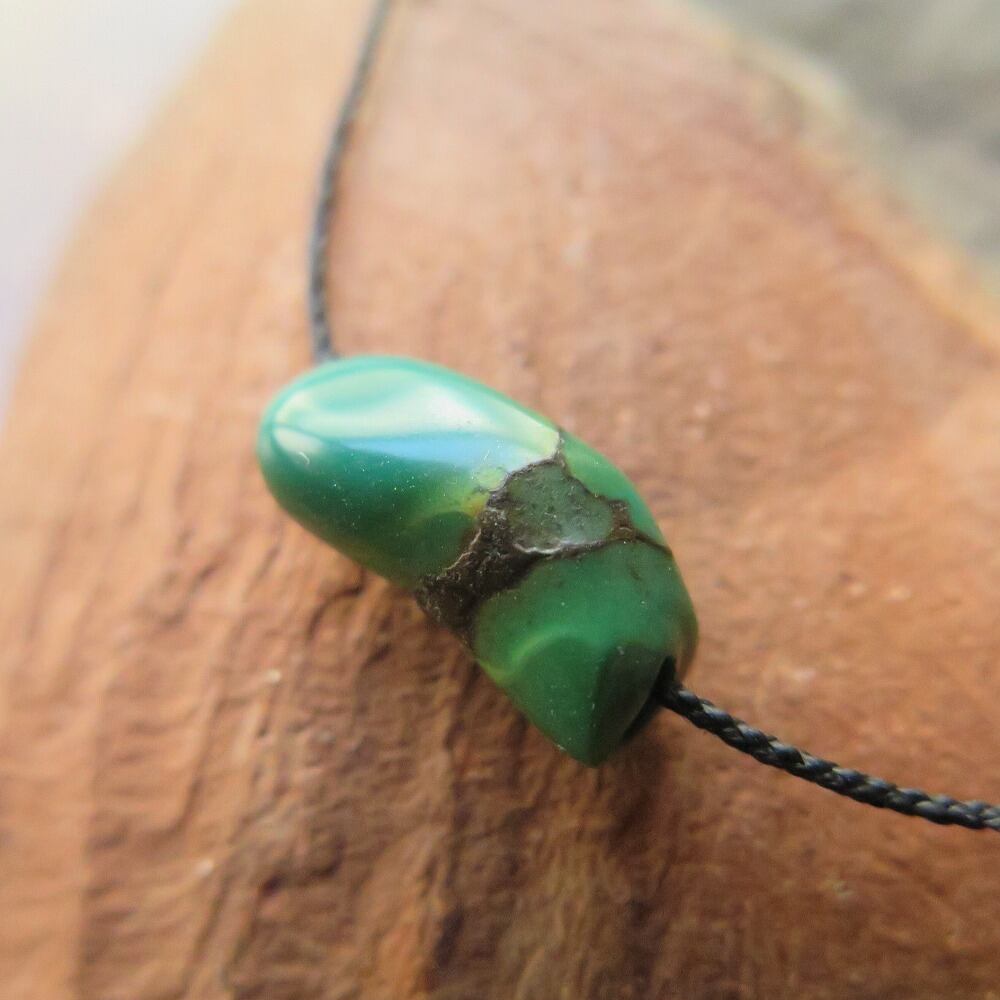長い長い年月使われて、穴回りが擦り減ってしまったチベタンターコイズ。