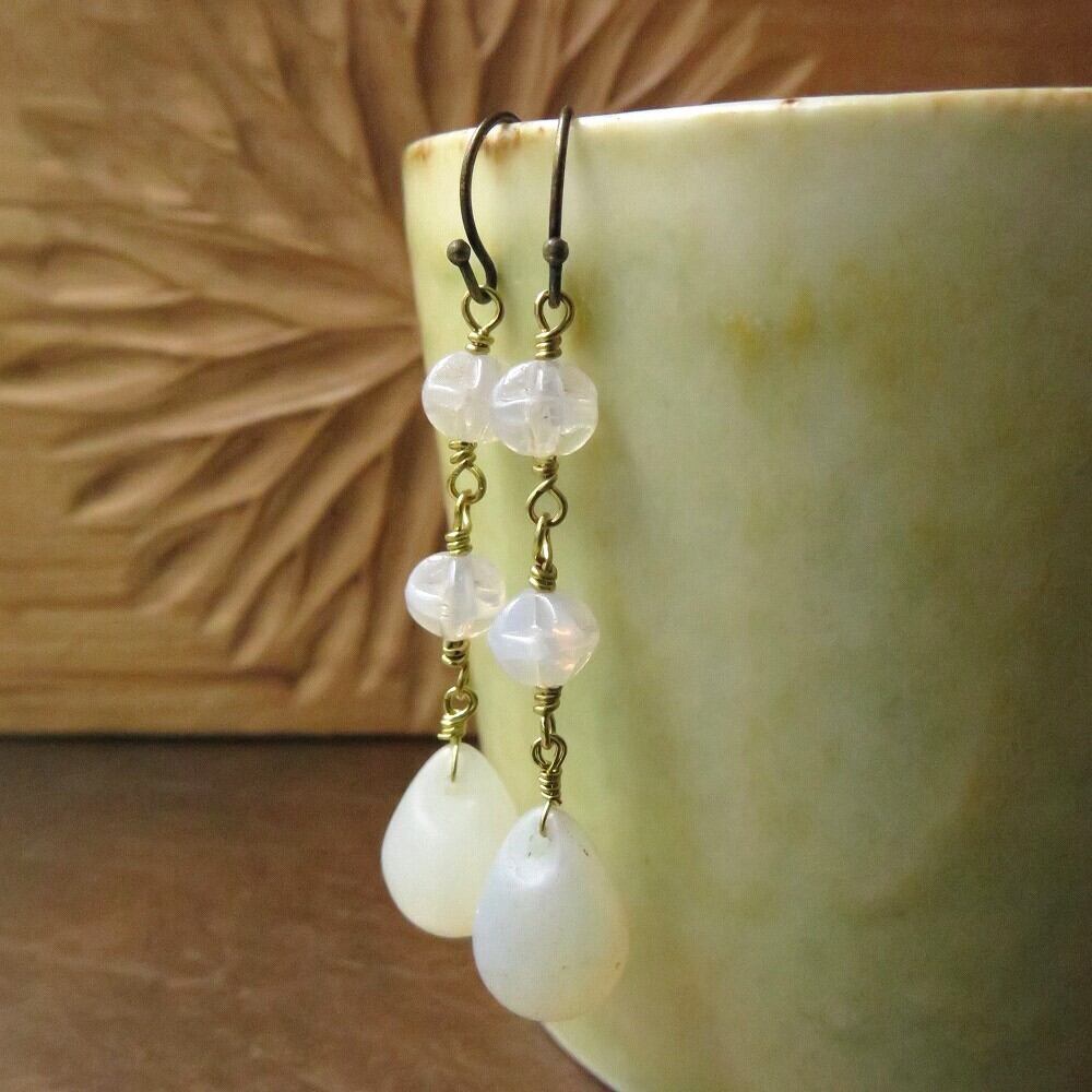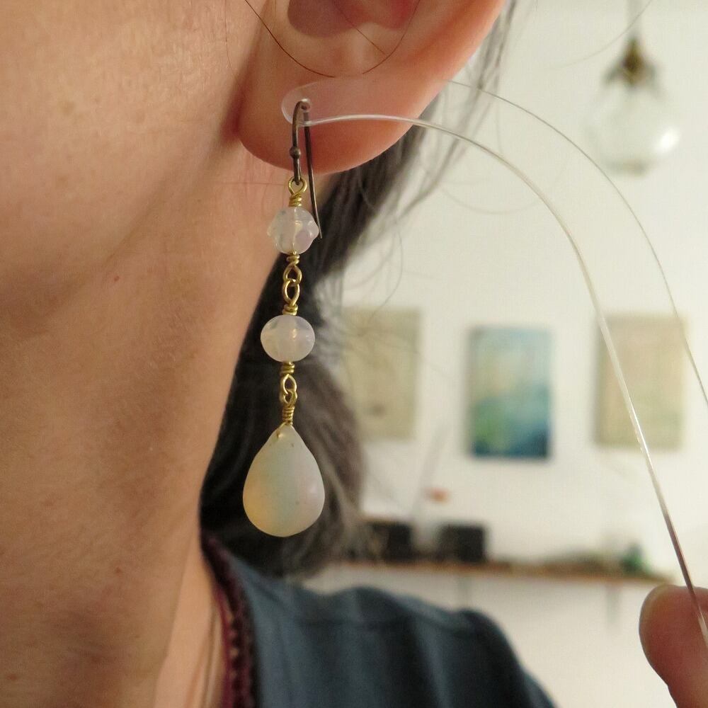 面白い形のボヘミアンビーズとあわせ、ピアス&イヤリングに仕立てました。