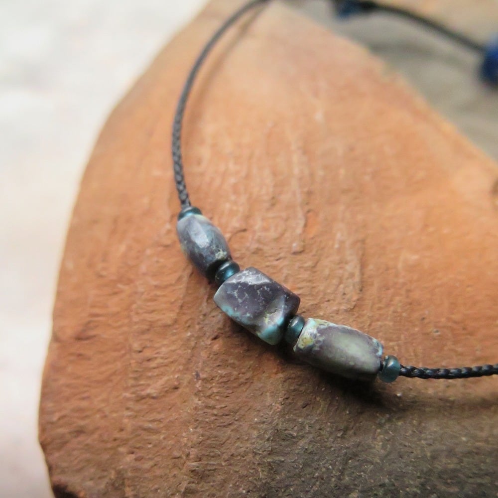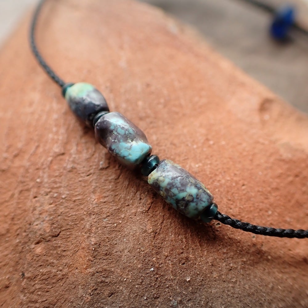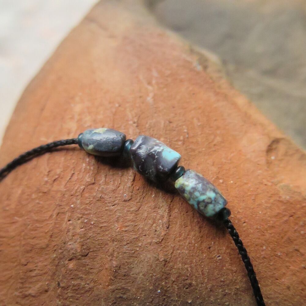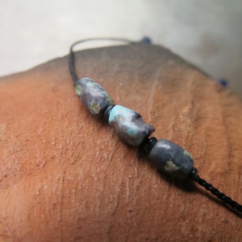 古代ターコイズの間には、小粒のインドパシフィックビーズをはさんでいます。