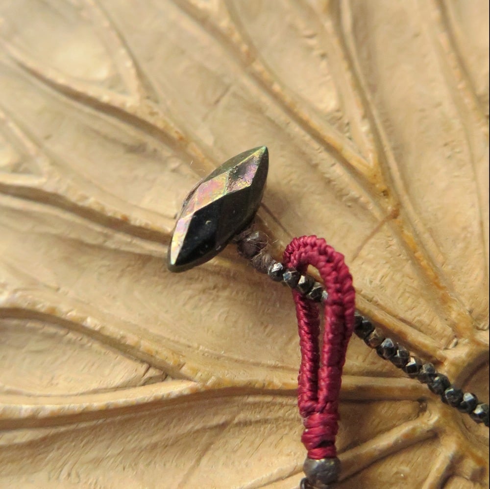 留めには、黒にオーロラ加工のヴィンテージビーズを使いました。