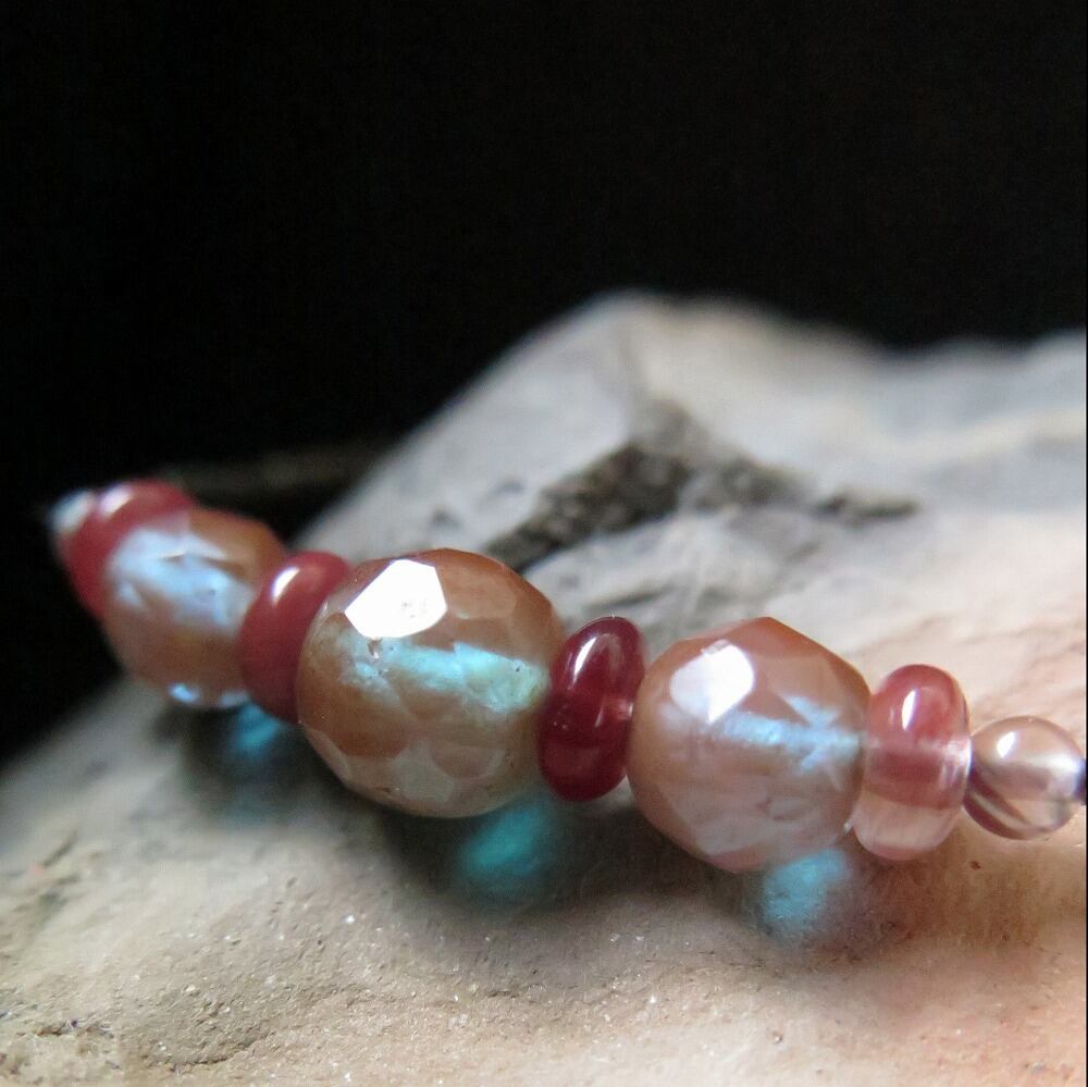 ブロンズ色のメタルビーズに、コーティングがされているようです。