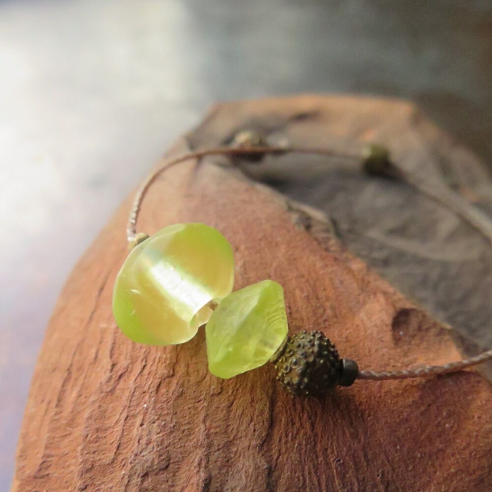 明るい黄色に真鍮の色が良く映えるブレスレットです。