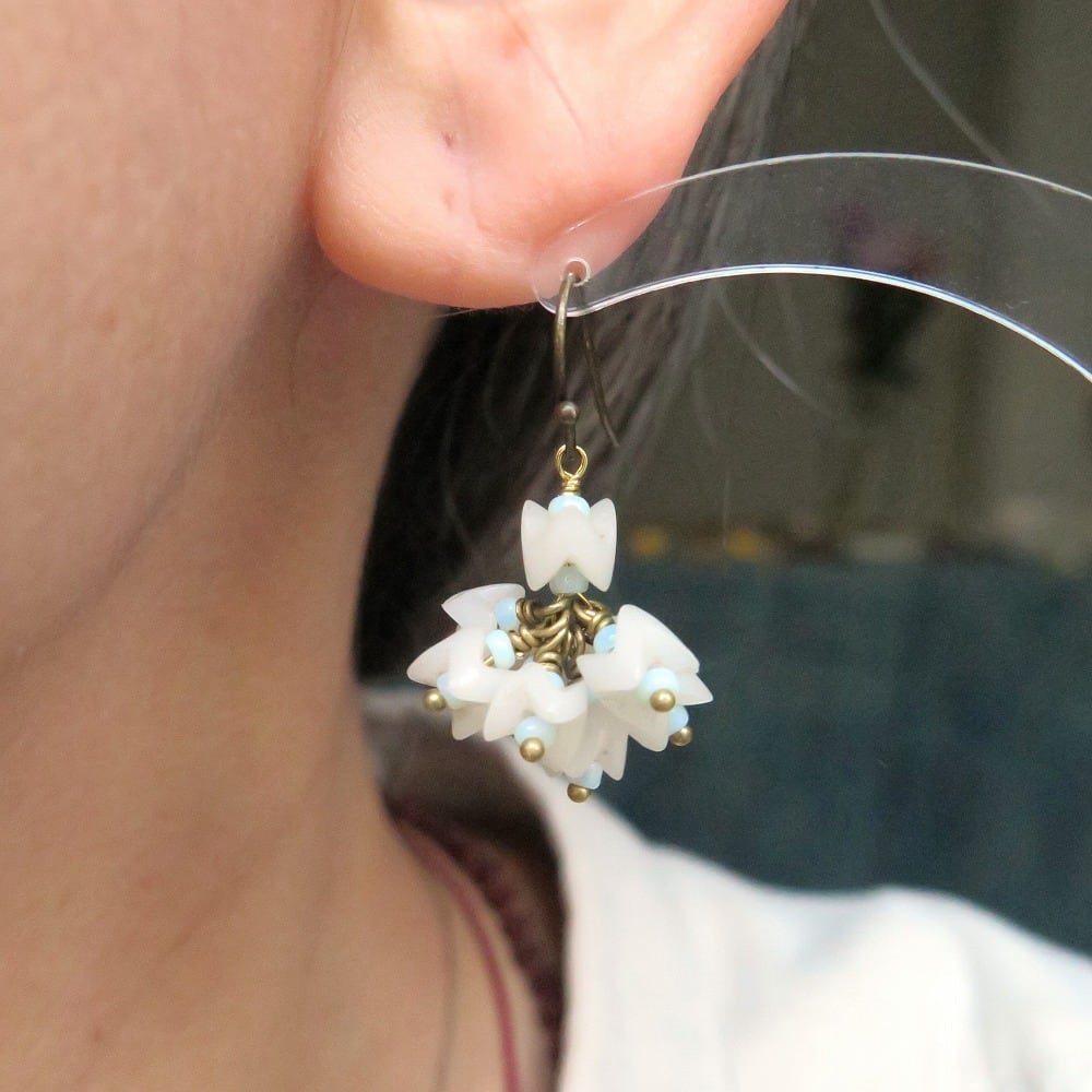 白のスネークビーズに、乳白にちょっぴりペパーミントが混じったようなヴェネチアンシードビーズを合わせました。