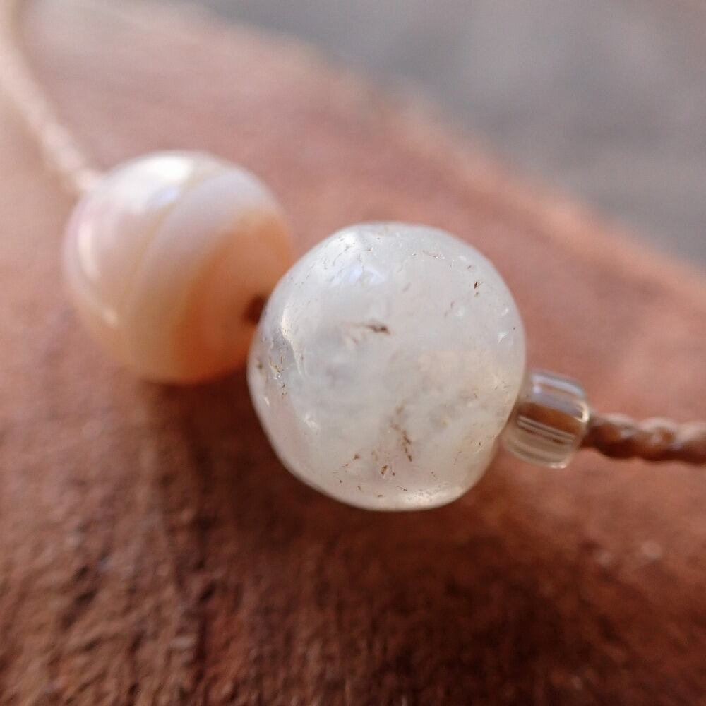 白い古代瑪瑙と、淡いオレンジの古代瑪瑙を並べました。