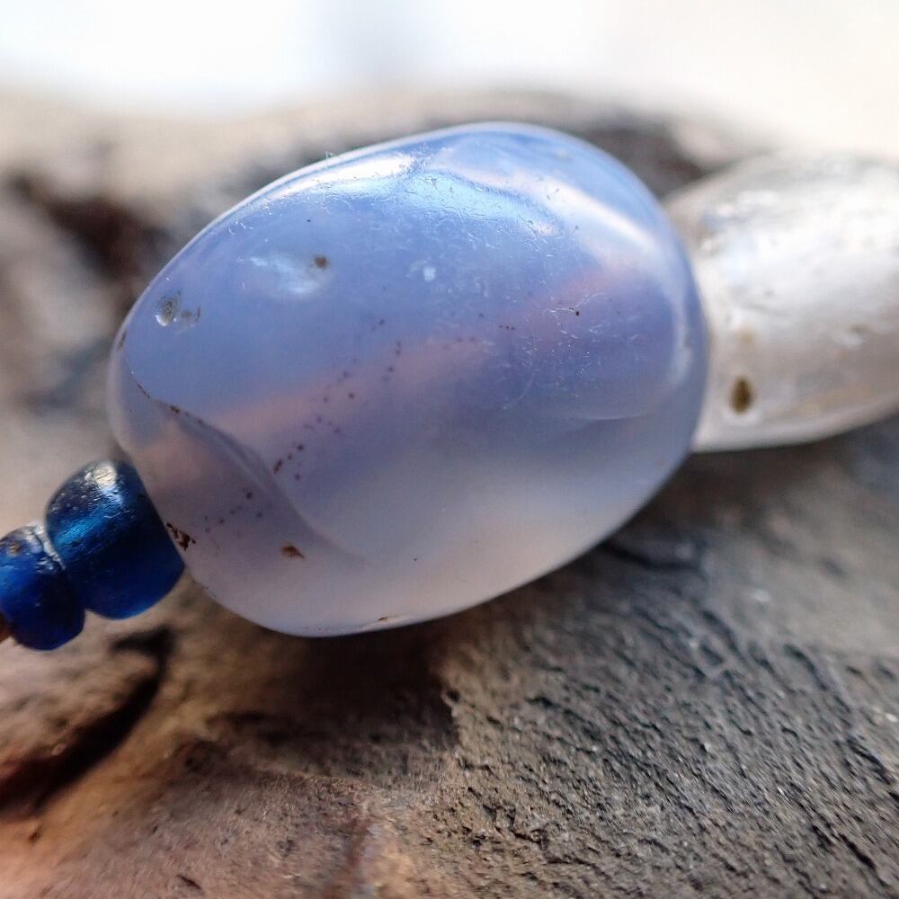 鮮やかな菫色の古代ブルーレースと出土ロシアンブルーを並べ、ネックレスに仕上げました。