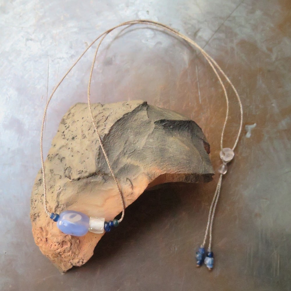 後ろのサイズ調整のビーズも出土ロシアンブルーとボヘミアのカットビーズ。
