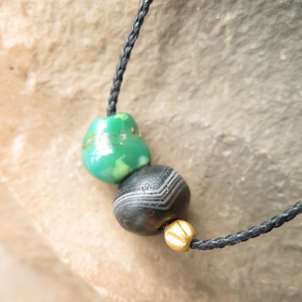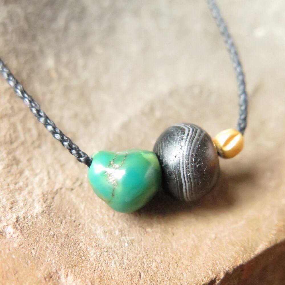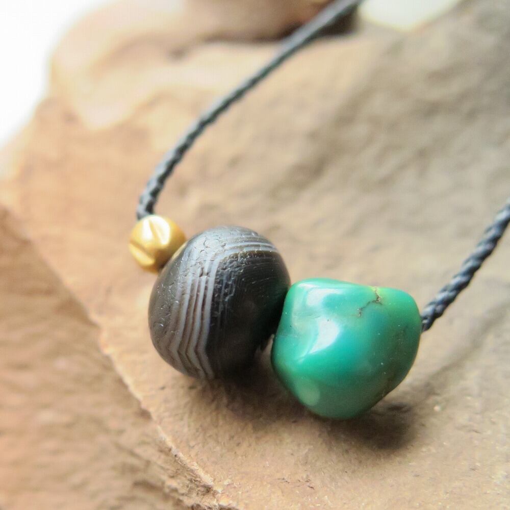 縞の美しい薬師珠に、艶やかなチベタンターコイズを合わせました。