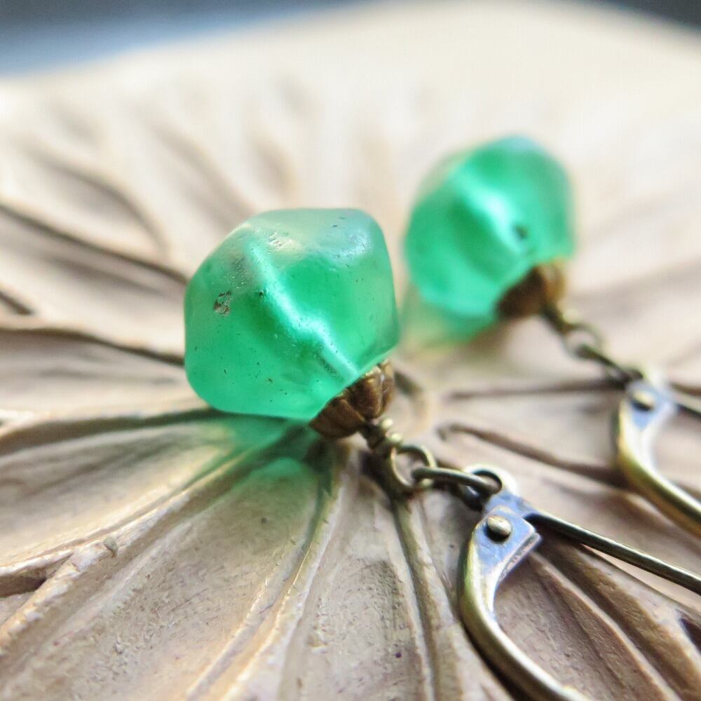 ウランガラス 緑 一粒 ピアス&イヤリング