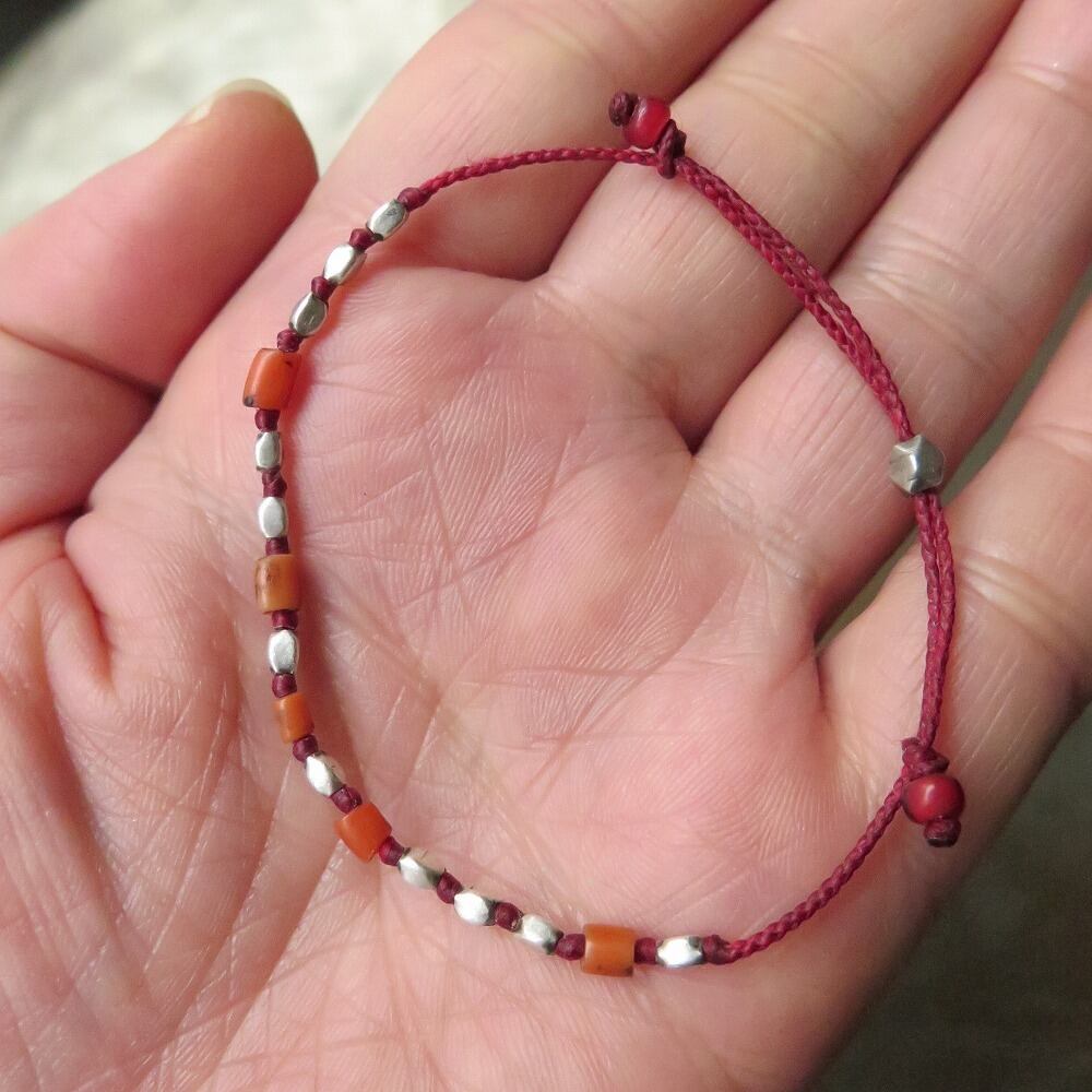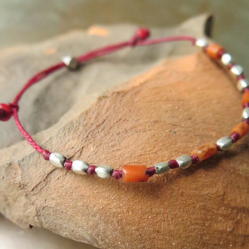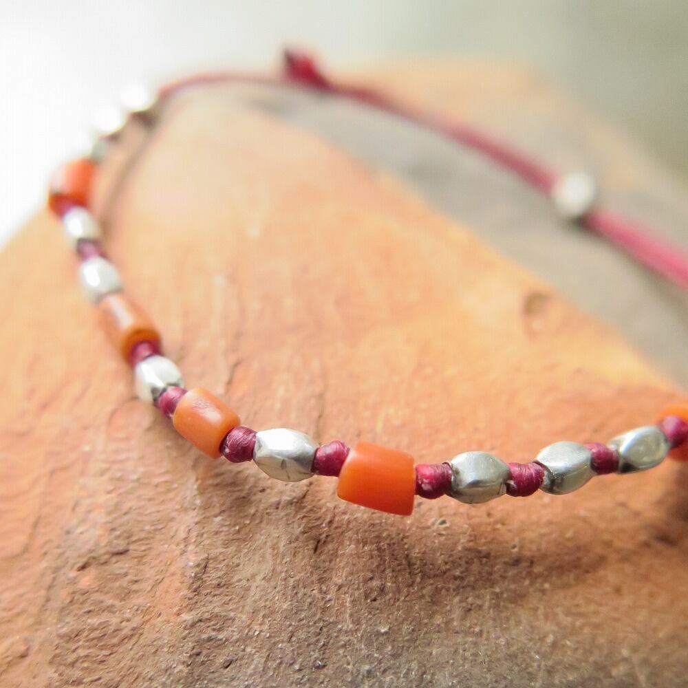 チンシルバー & 珊瑚 赤 ブレスレット