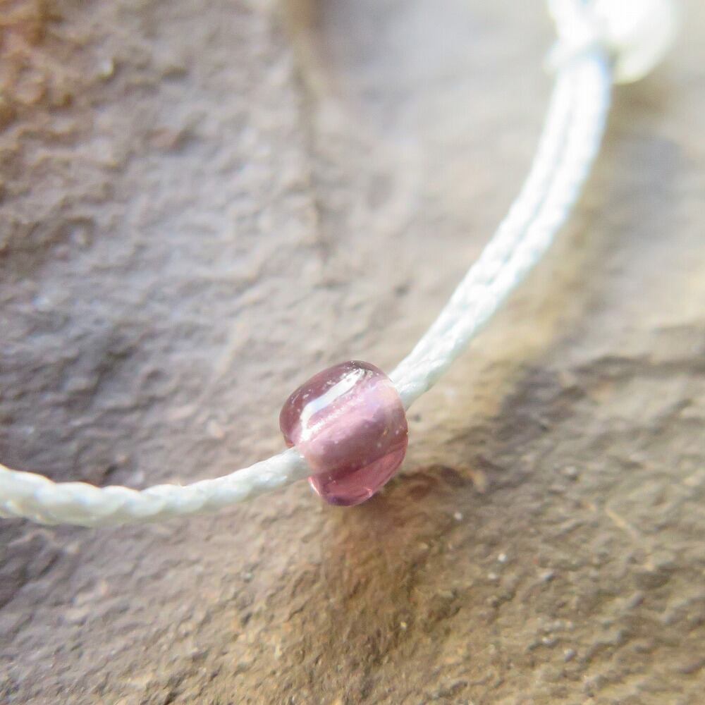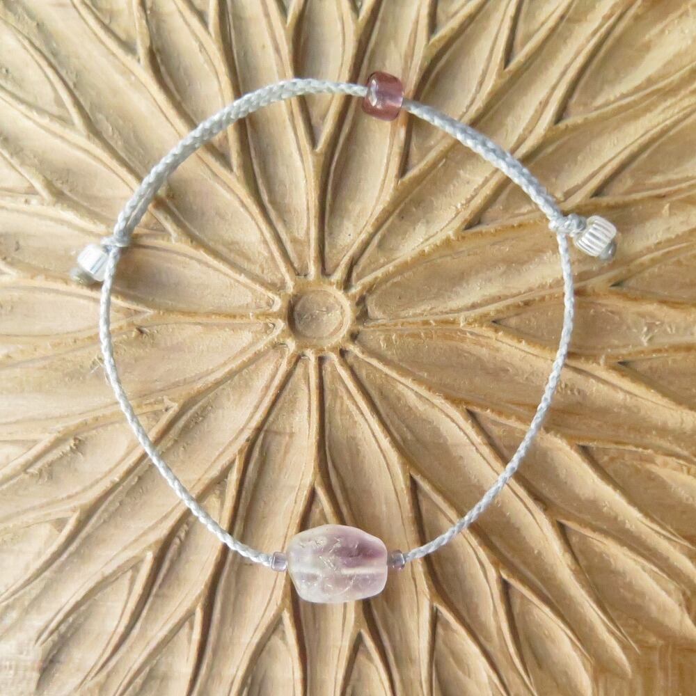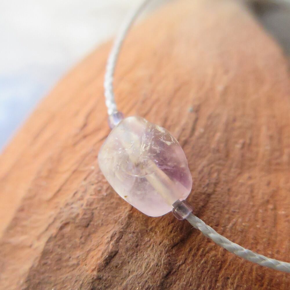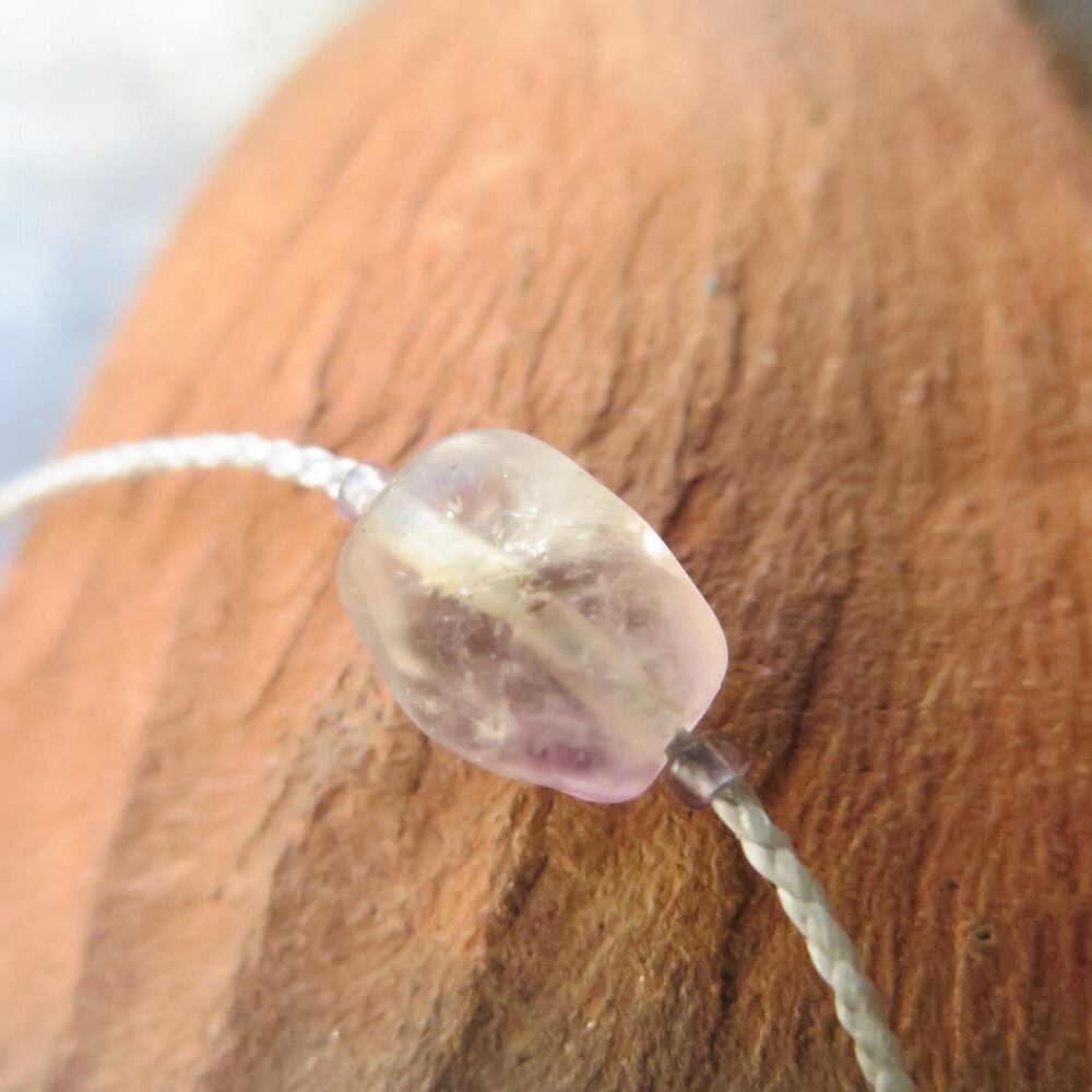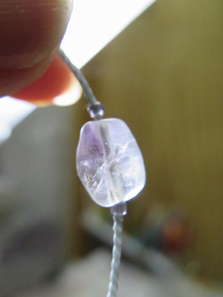 一部、紫水晶の入った古代水晶を一粒、蝋引き紐に通しました。