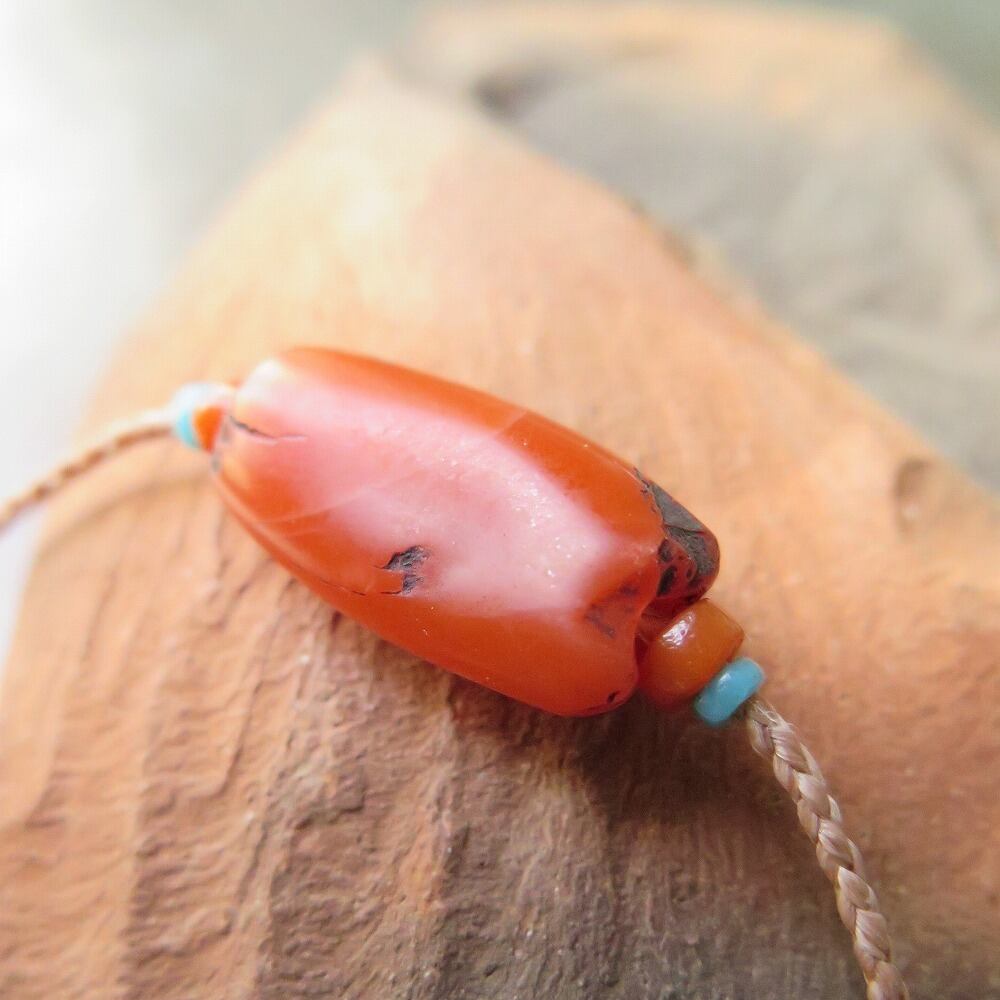 両脇にインドシードビーズで、少しだけ色を添えました。