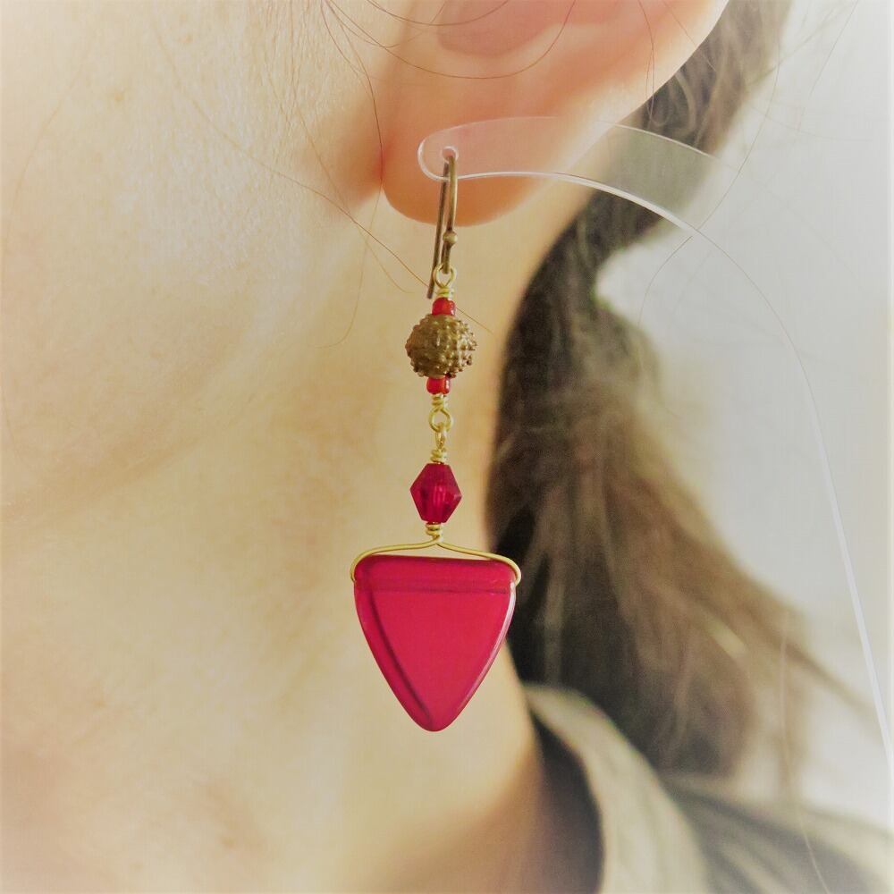三角のウェディングビーズに、西アフリカの少数民族に伝わる真鍮ビーズをあわせました。