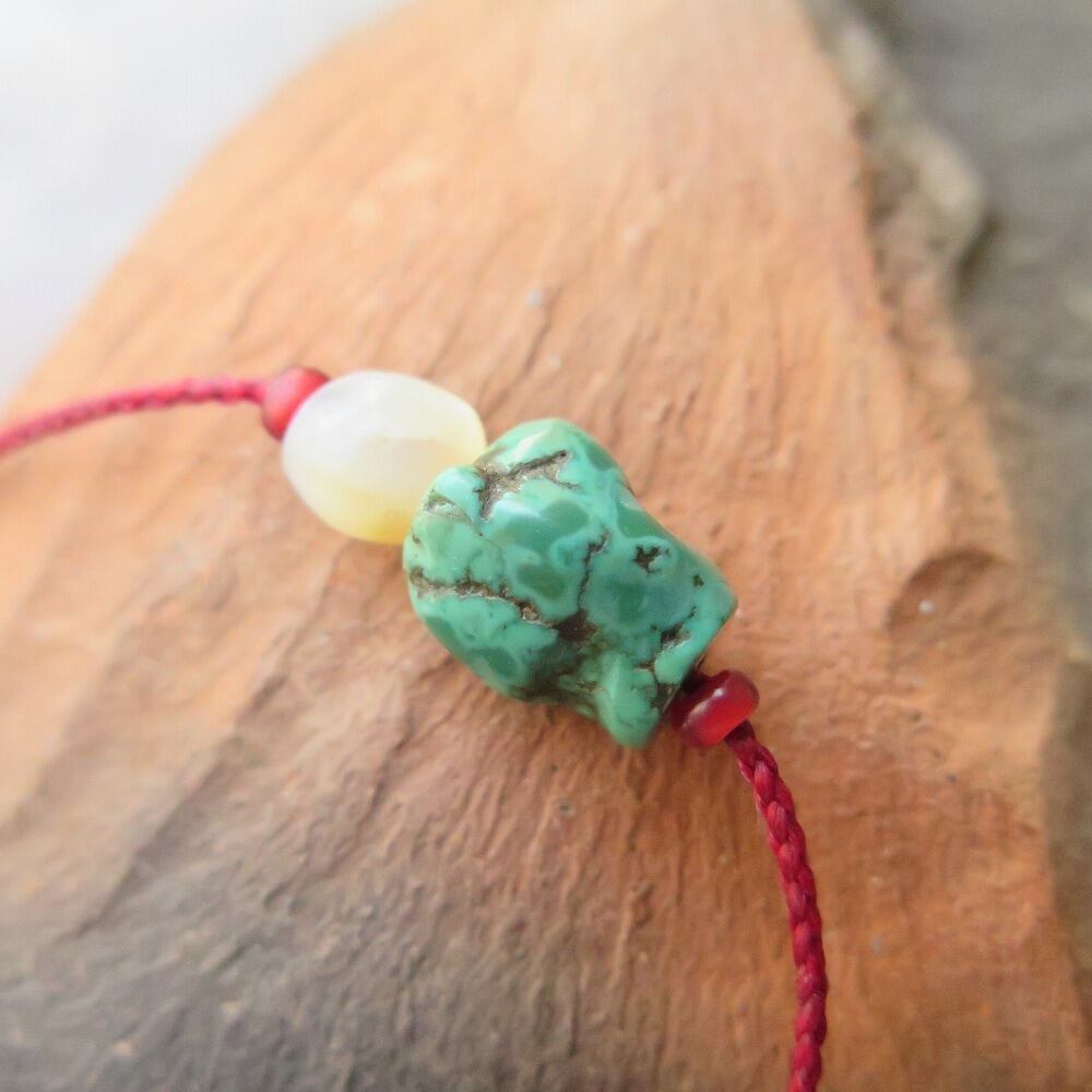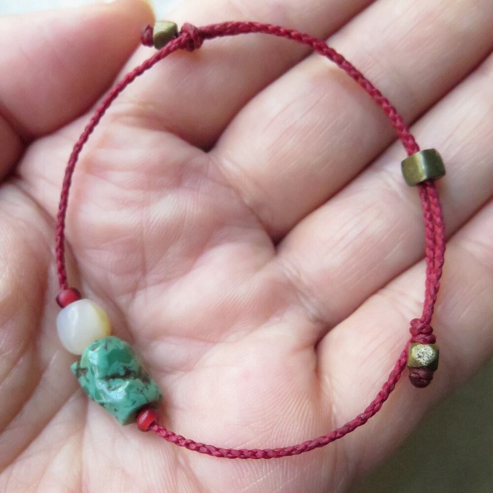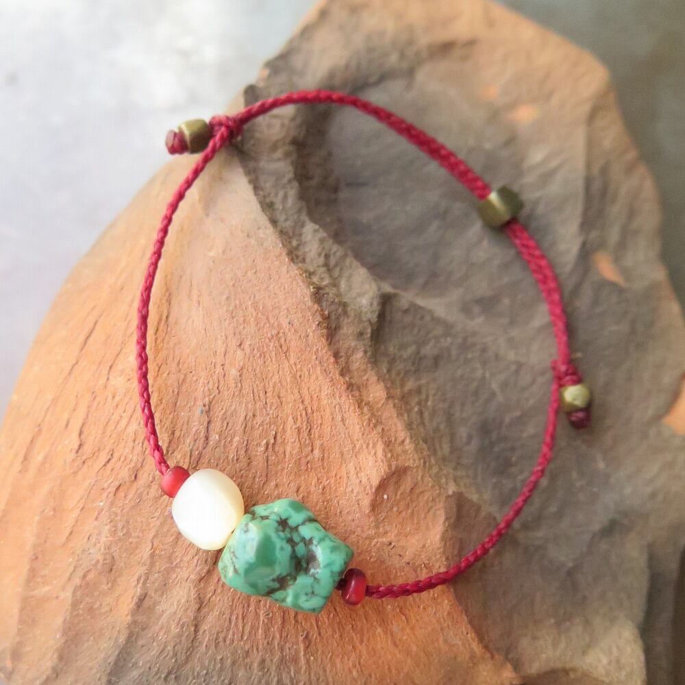 チベタンターコイズ & マザーオブパール 赤 ブレスレット