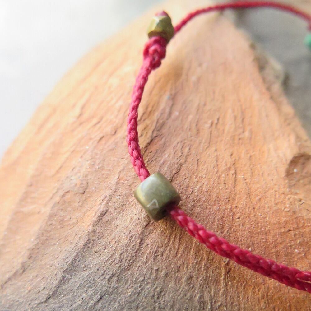 赤い蝋引き紐で仕上げました。