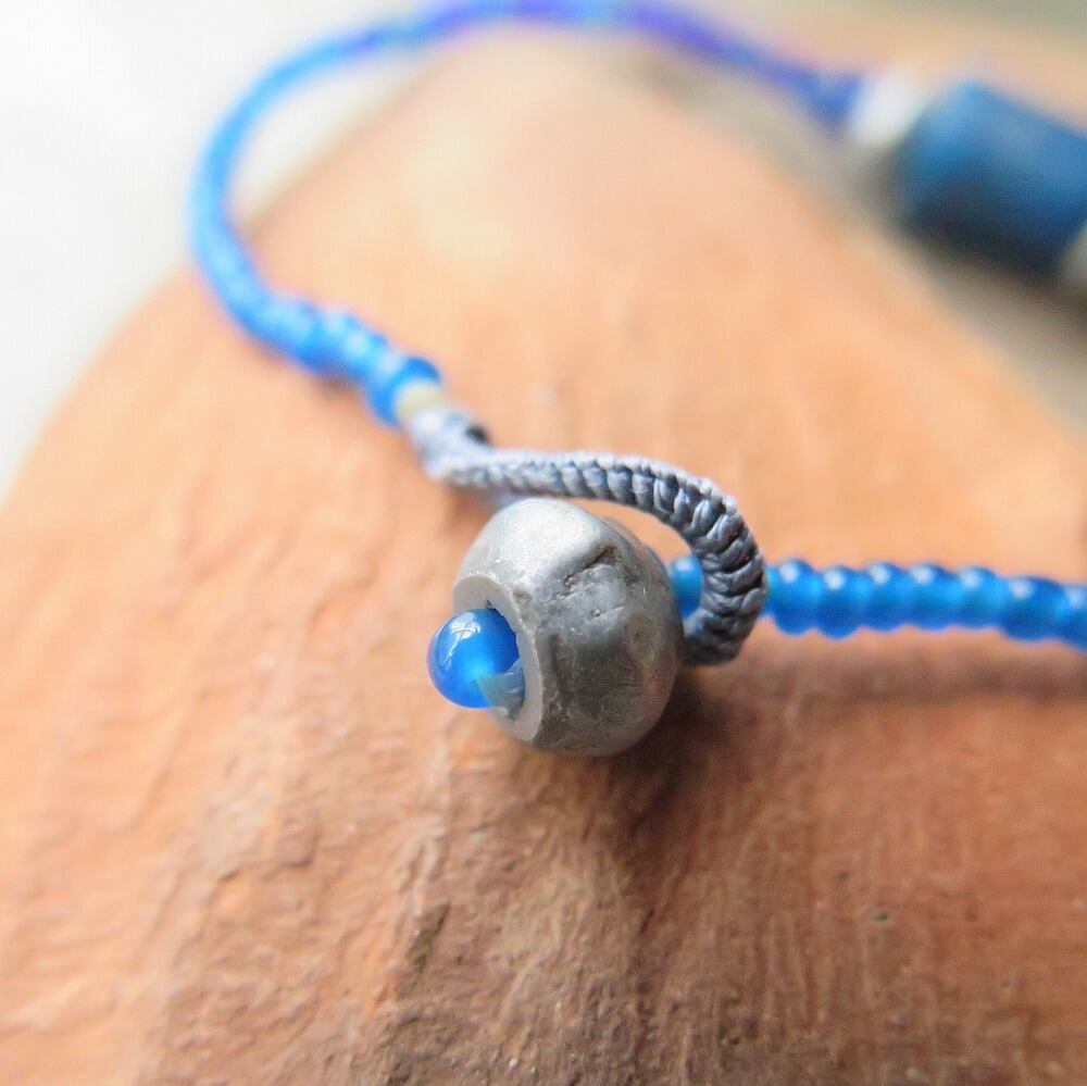 アフリカ再生玉 青 + アルミビーズ ブレスレット