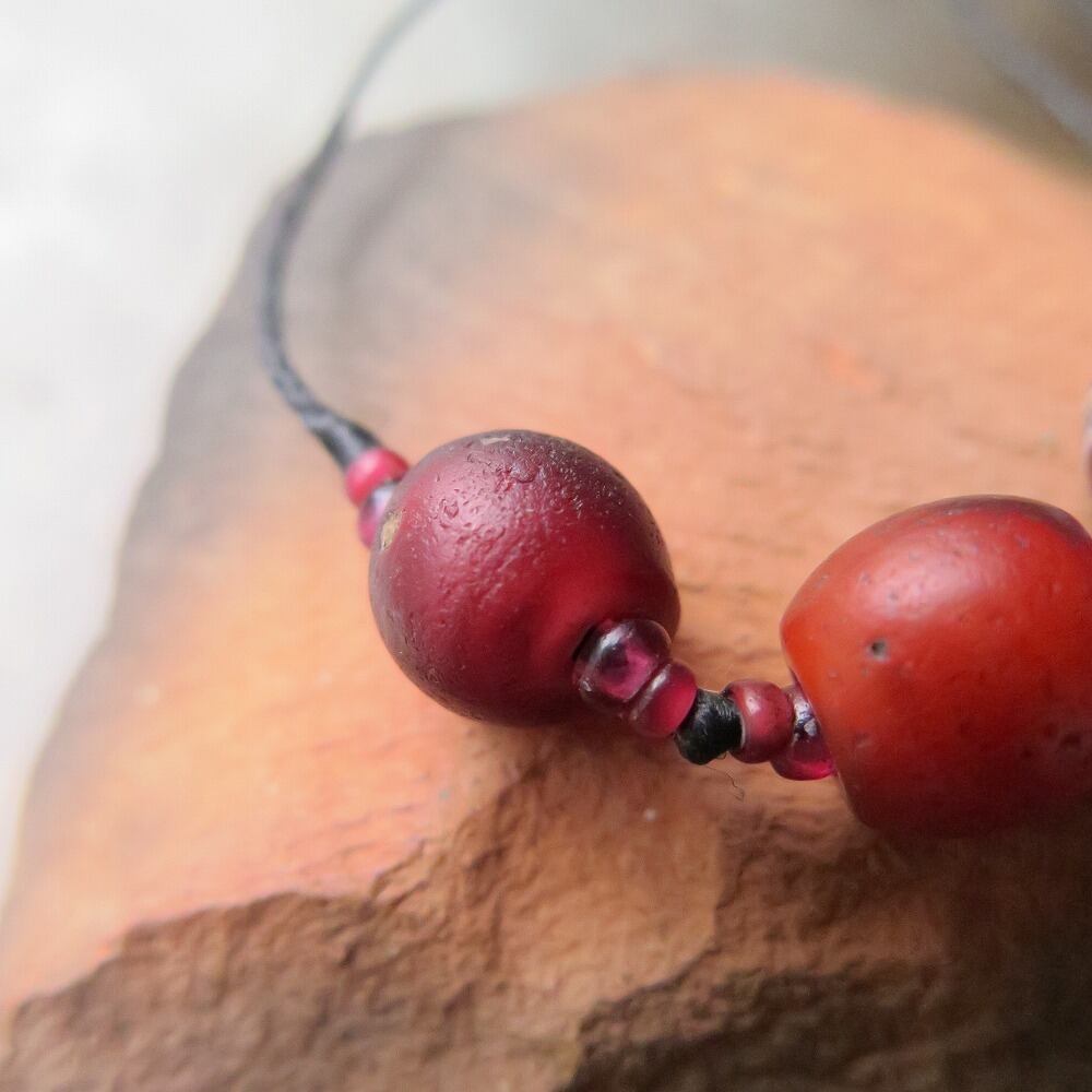 緒 赤玉 × 3 ホワイトハート ネックレス