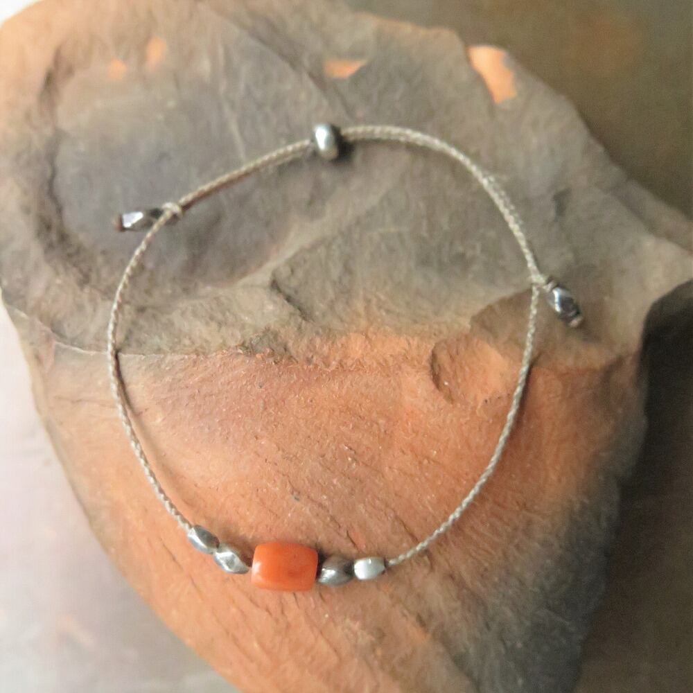 チンシルバー + 珊瑚 茶鼠 ブレスレット