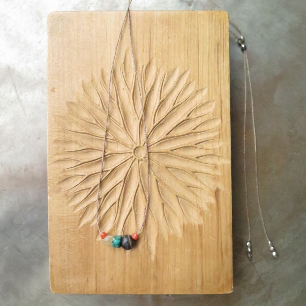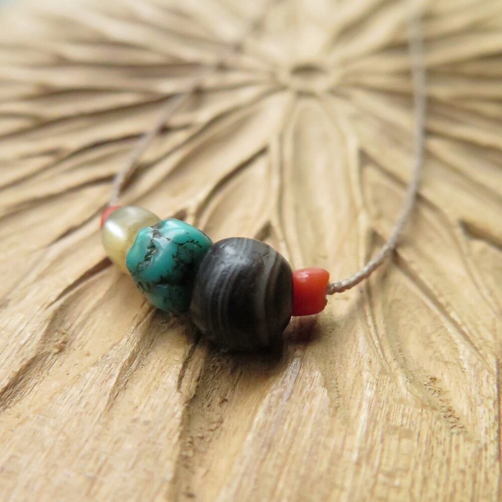 小さな薬師珠に、小さなチベタンターコイズ、小さなマザーオブパール、小さな珊瑚を添えました。
