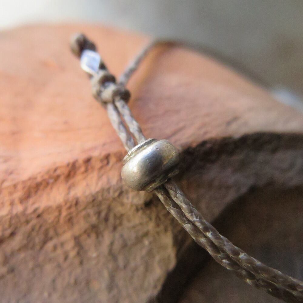 二本の紐をまとめるのは、丸みのあるチンシルバー。