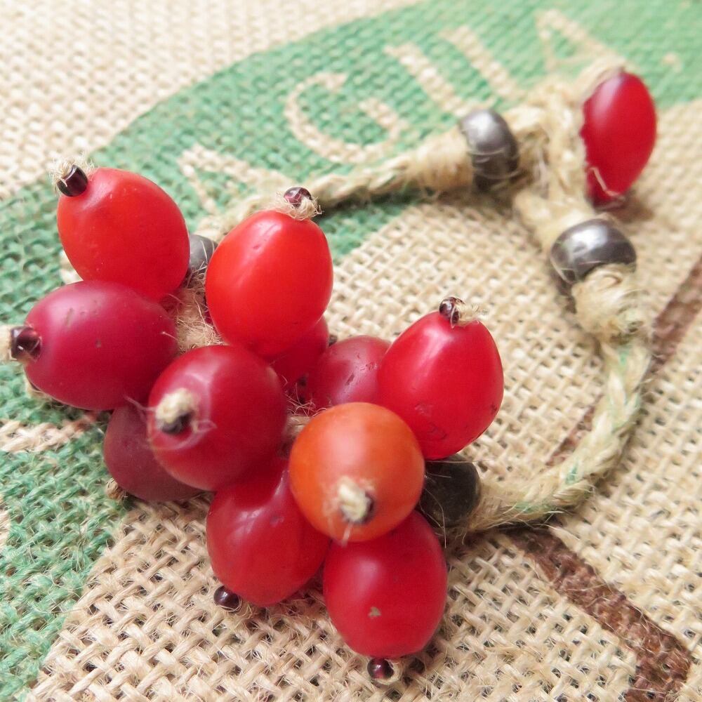 エチオピアンチェリーと呼ばれる紡錘形の赤いビーズ。