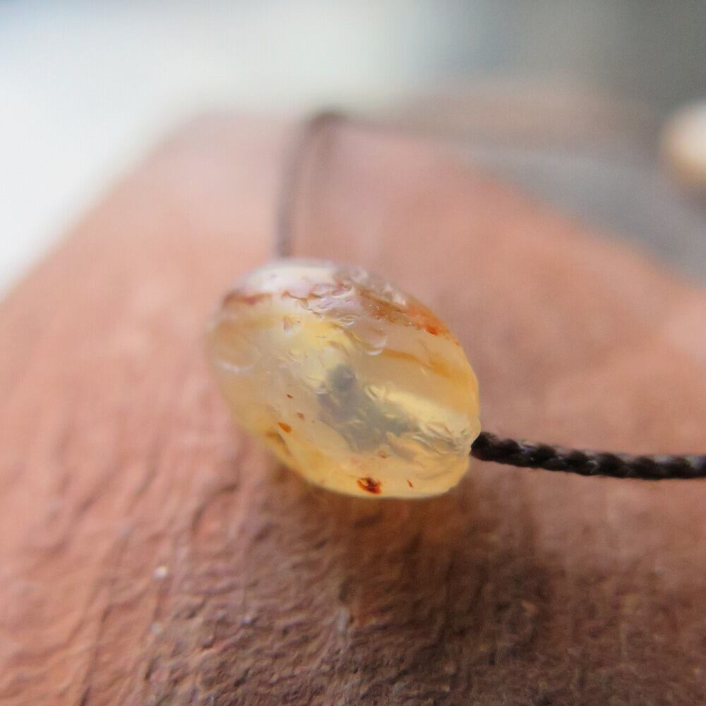 透明感ある石に、オレンジ色の縞が少し入った瑪瑙です。