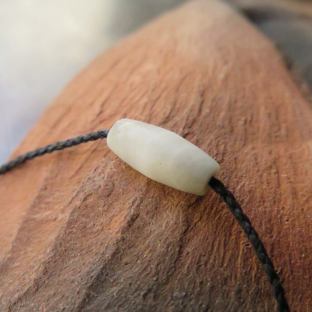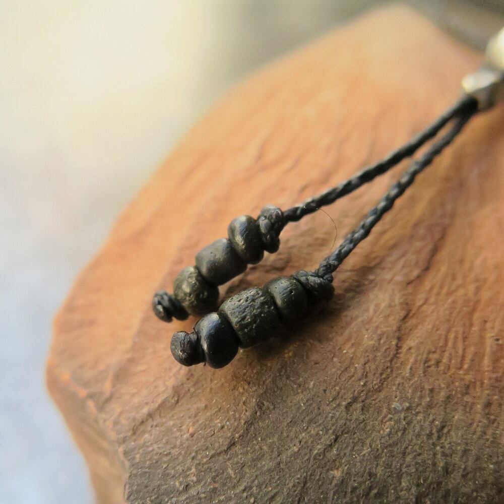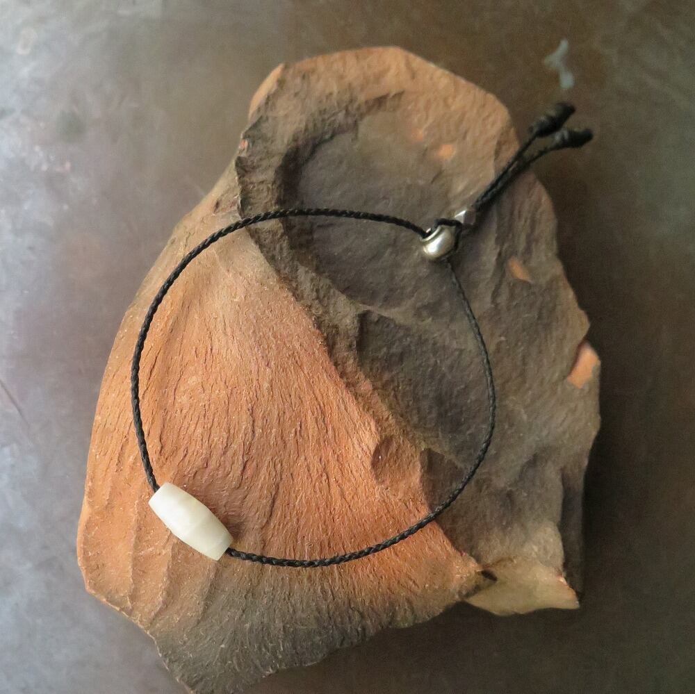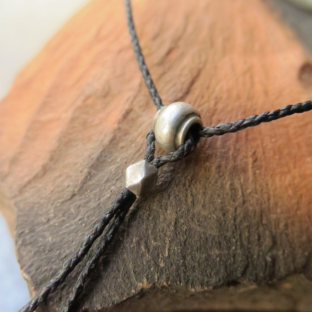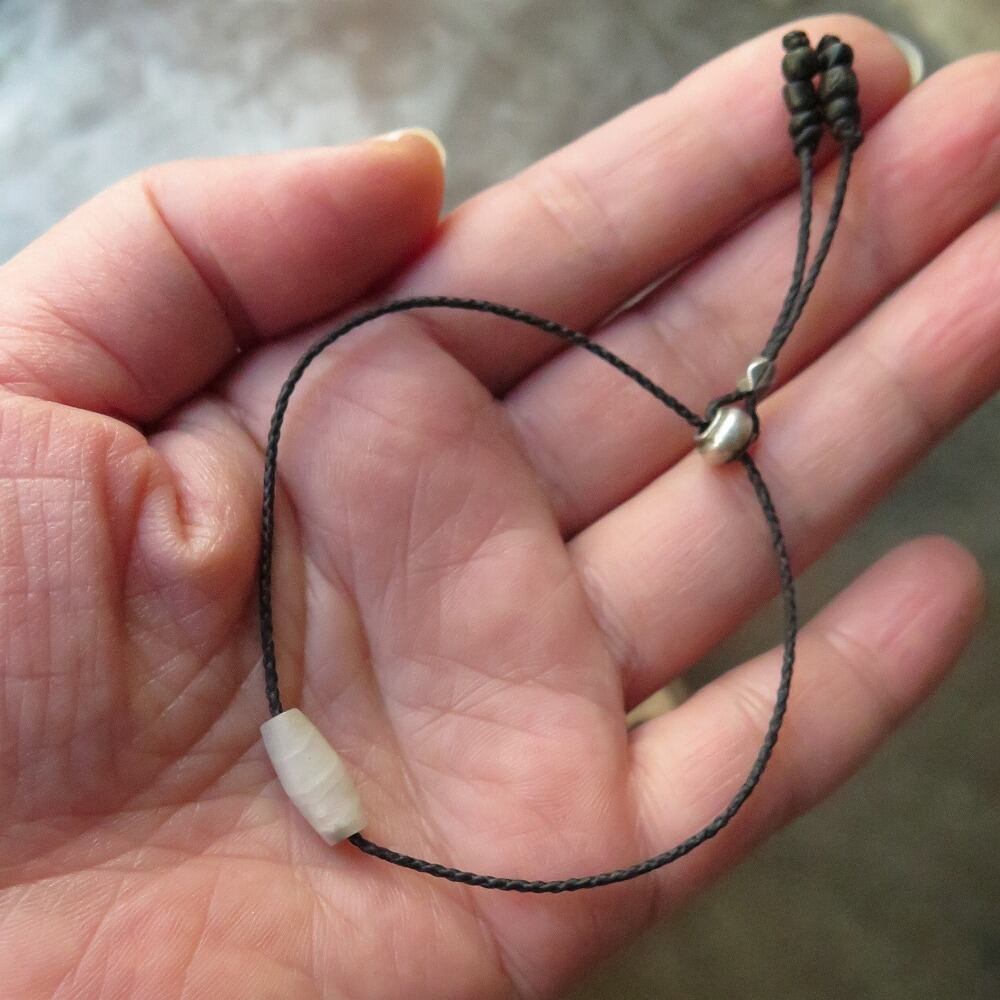 黒い紐の引き締め、繊細ながら強さのあるブレスレットです。