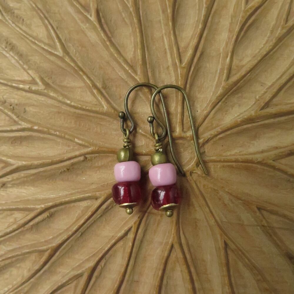 ピンクマサイ & 金赤 ピアス&イヤリング