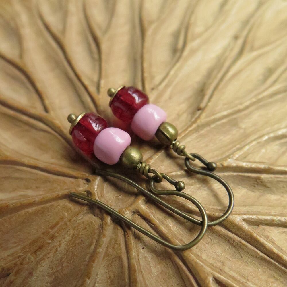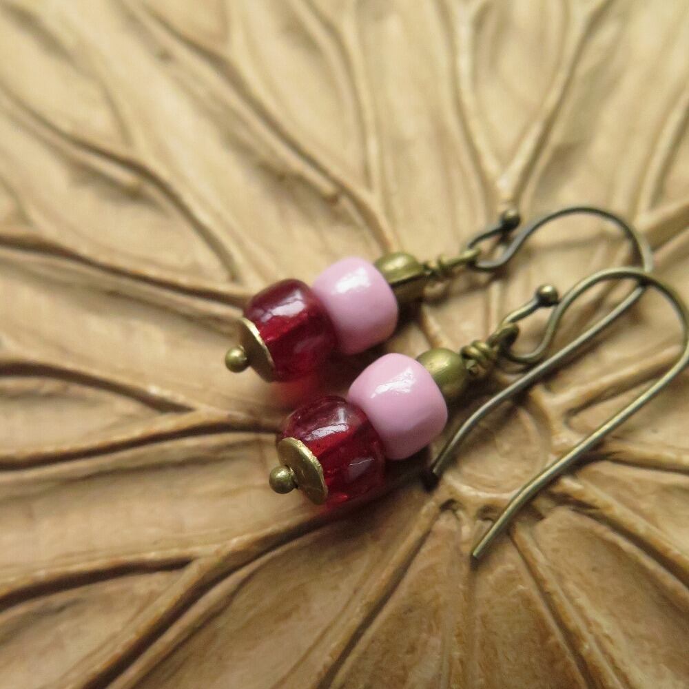 ピンクのシードビーズを重ね、ちょこんと真鍮の帽子を被せました。