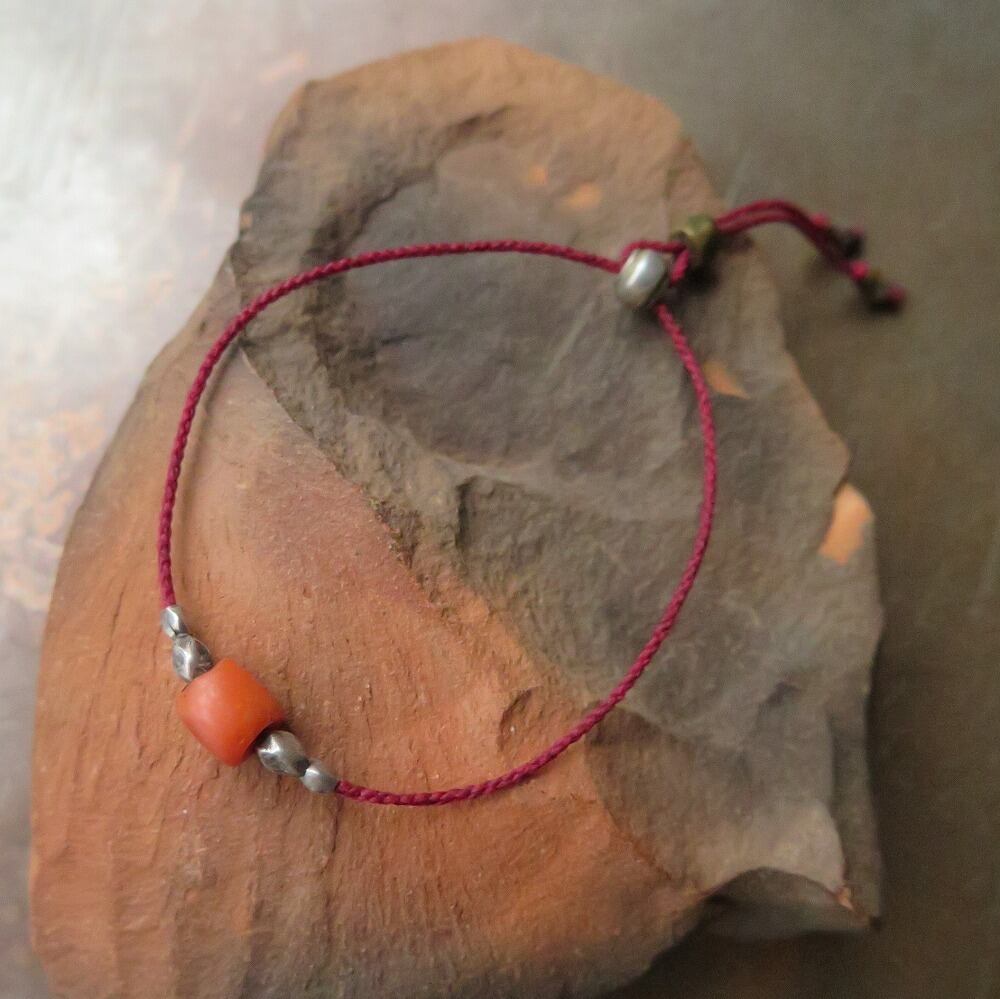 珊瑚 & 銀+真鍮 赤 ブレスレット
