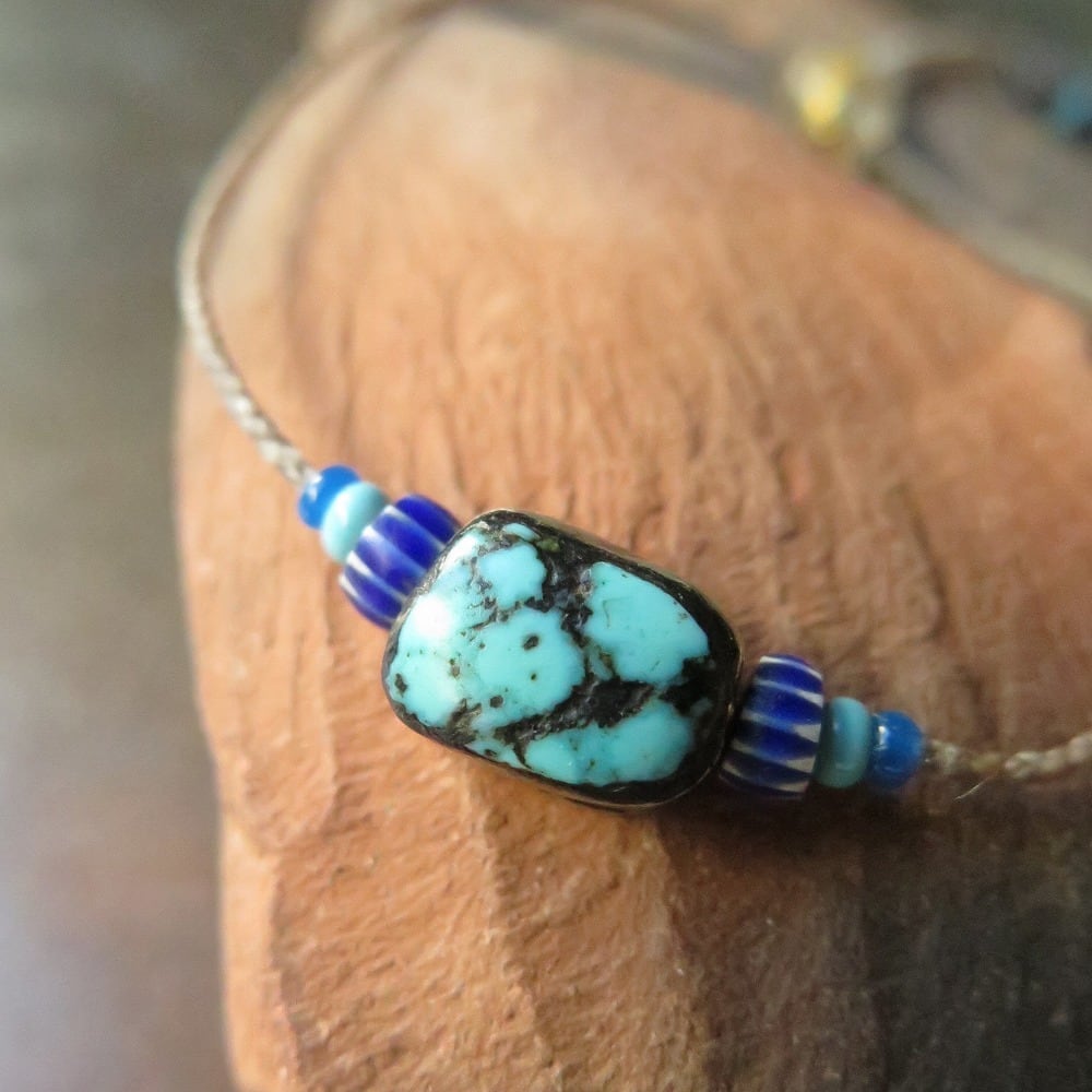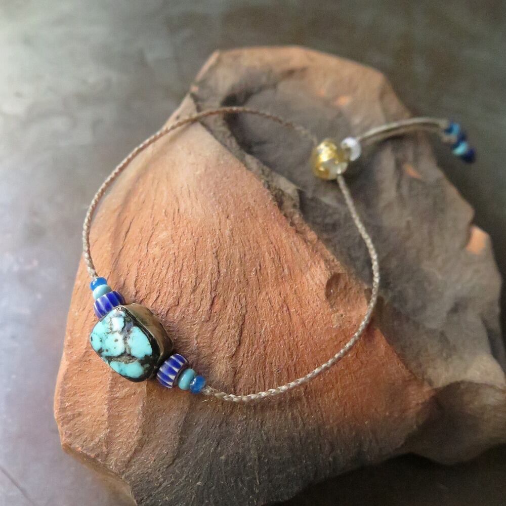 象嵌チベタンターコイズ 水色 & ヴェネチアン ブレスレット