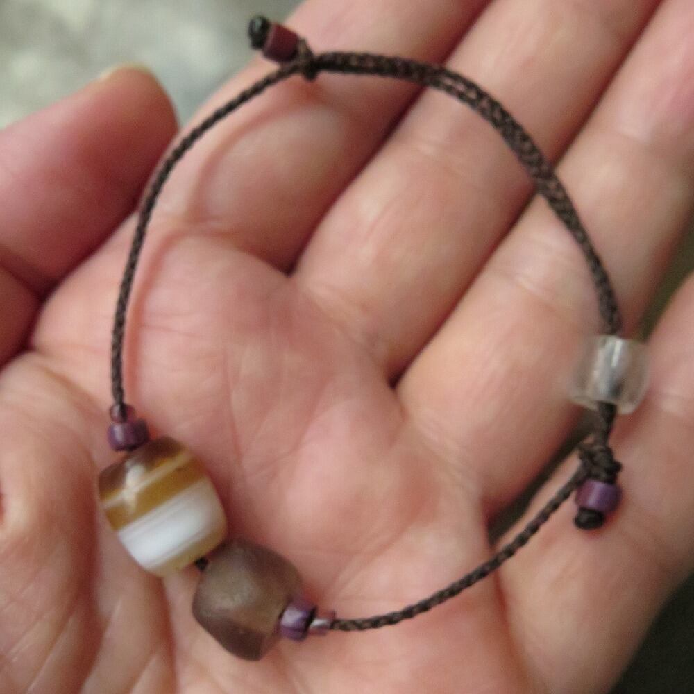 古代瑪瑙 白 & ドゴン 薄々茶 + 出土ロシアンブルー ブレスレット