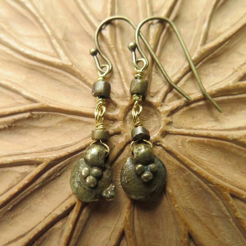 インド渡りのオールド真鍮で、ピアス&イヤリングを作りました。