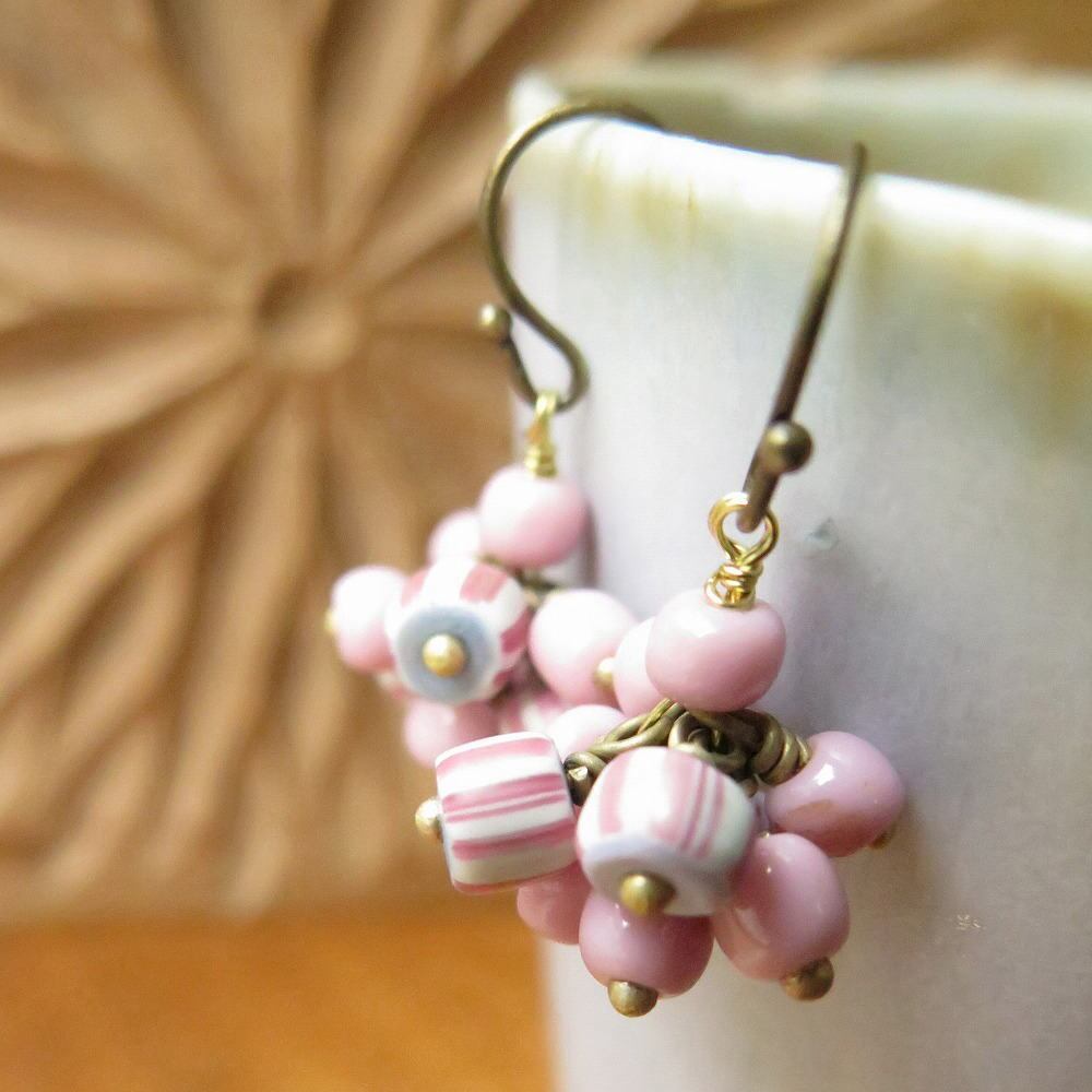愛らしいピンクマサイとピンク&白のカンネを房にしたピアス&イヤリングです。