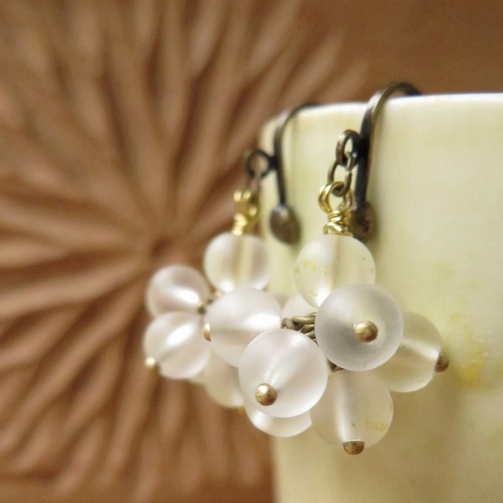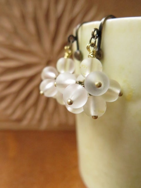 すりガラスのような玉、涼やかなピアス&イヤリングに仕立てました。
