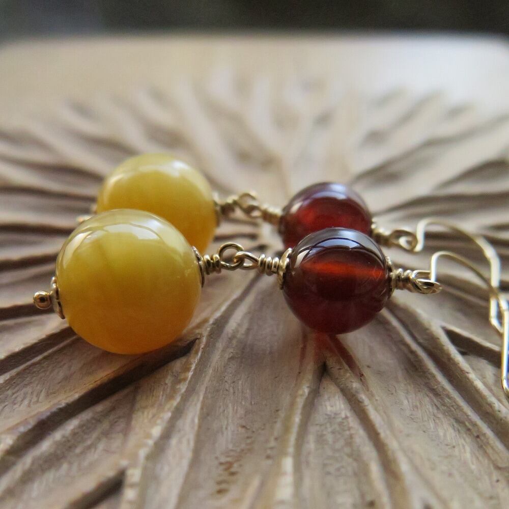 ウランガラス + ヘソナイトガーネット 金 ピアス&イヤリング