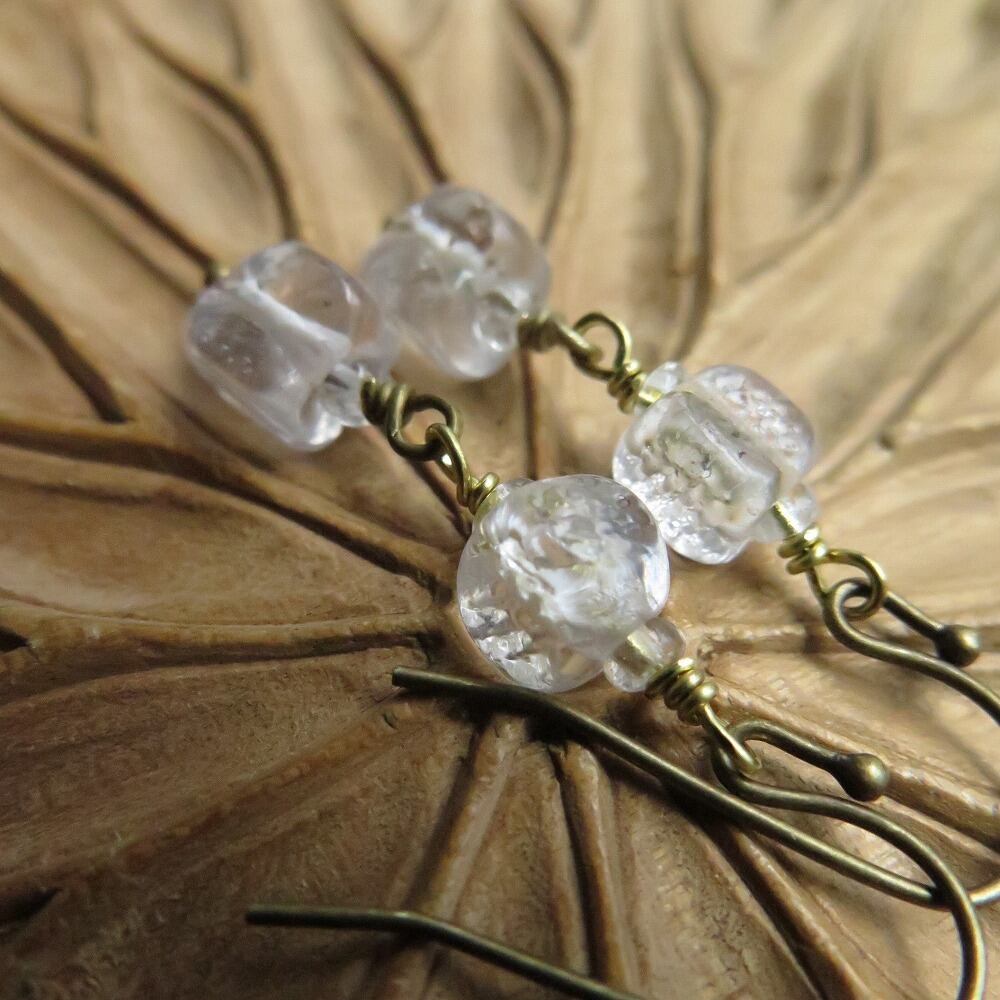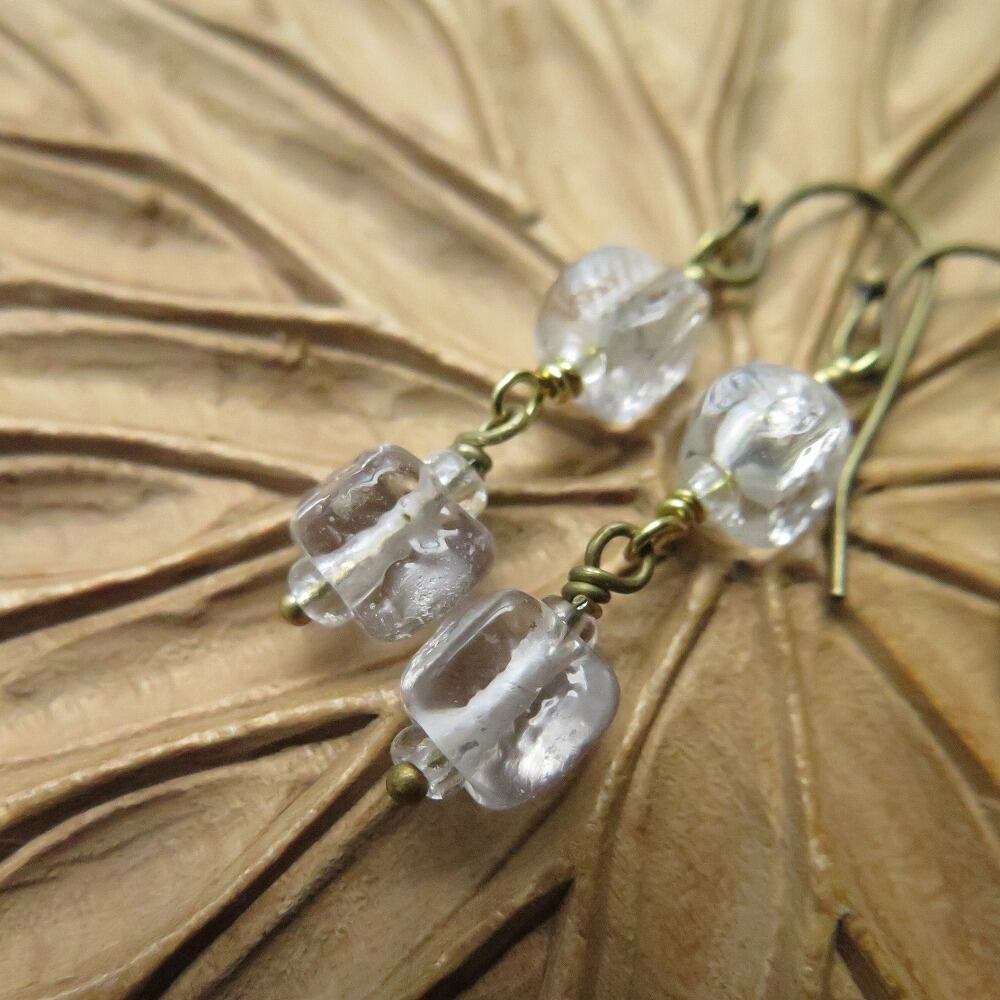 透明なヴェネチアンビーズの上下に、シードビーズを合わせて繋ぎました。