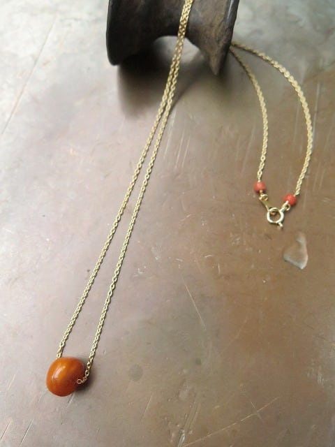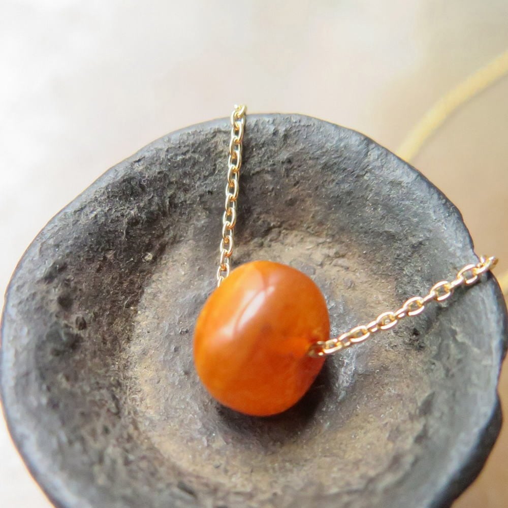 飴色のチベタン琥珀に、18金チェーンを通しネックレスに仕上げました。