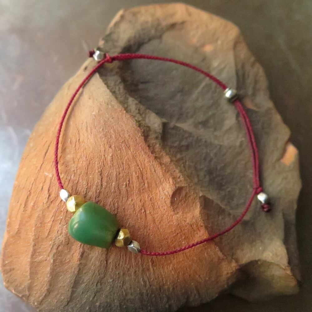 チベタンターコイズ 抹茶 + 金&銀 ブレスレット