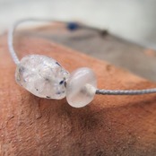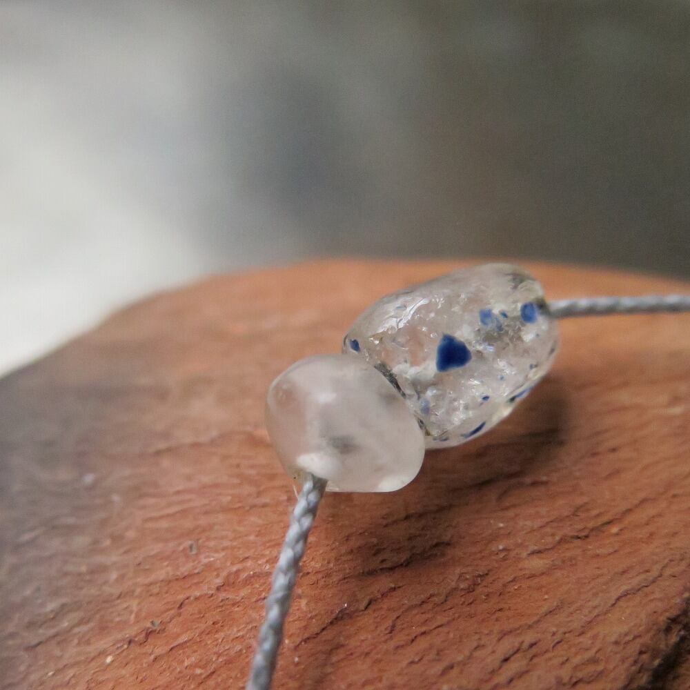施釉水晶 & 古代水晶 + 青 & 銀 ブレスレット