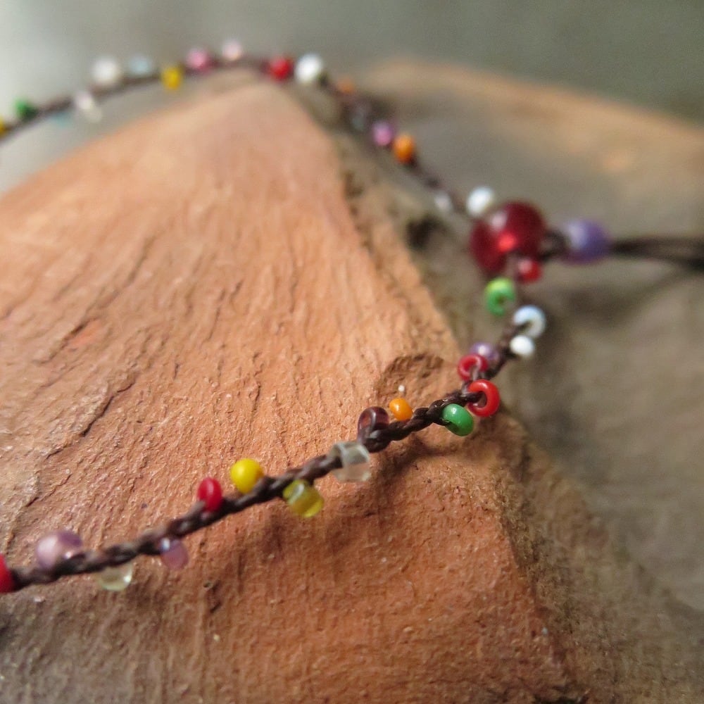 とてもカラフルで、ランダムなビーズの並びが特徴。
