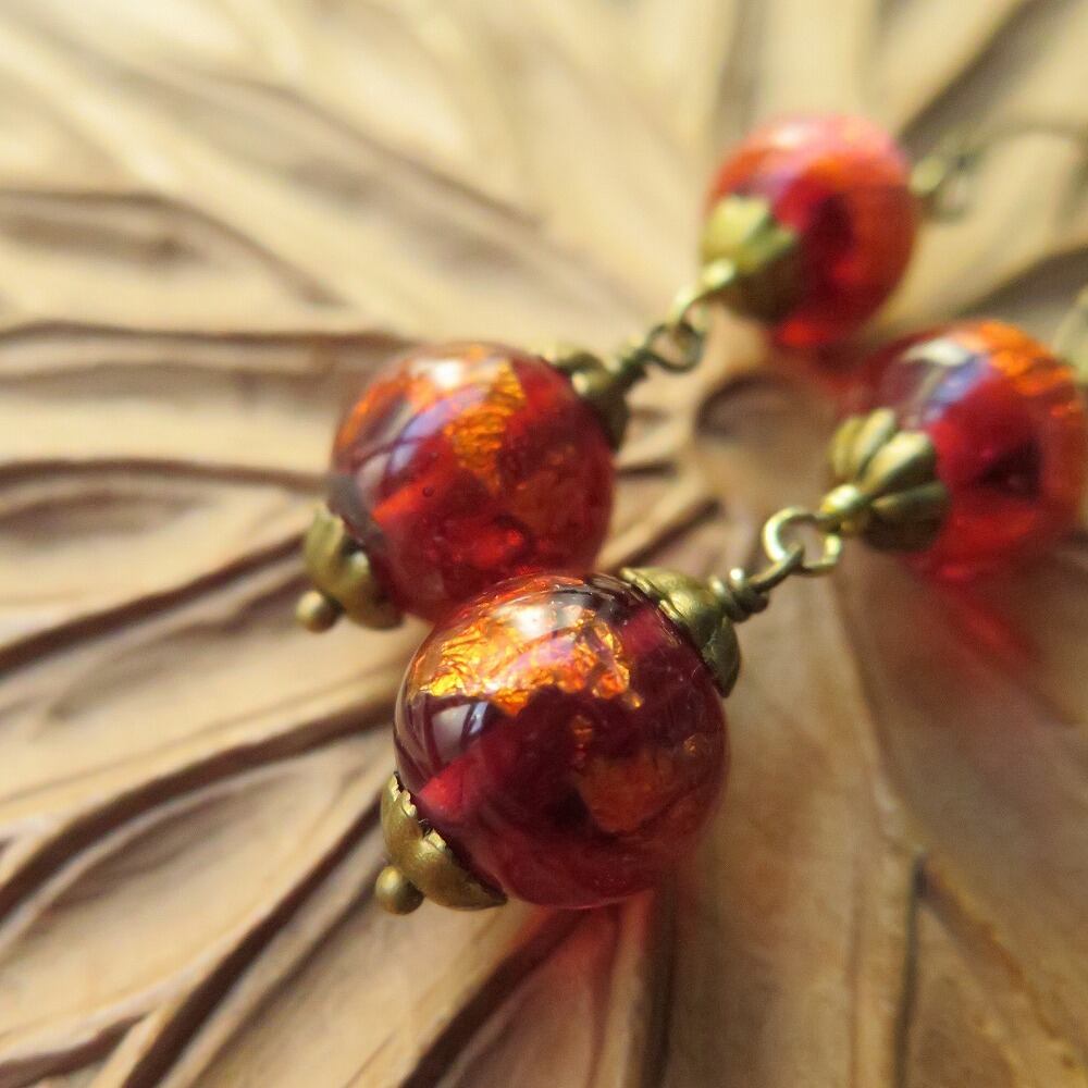箔が入った赤いボヘミアンビーズを、二個並べました。