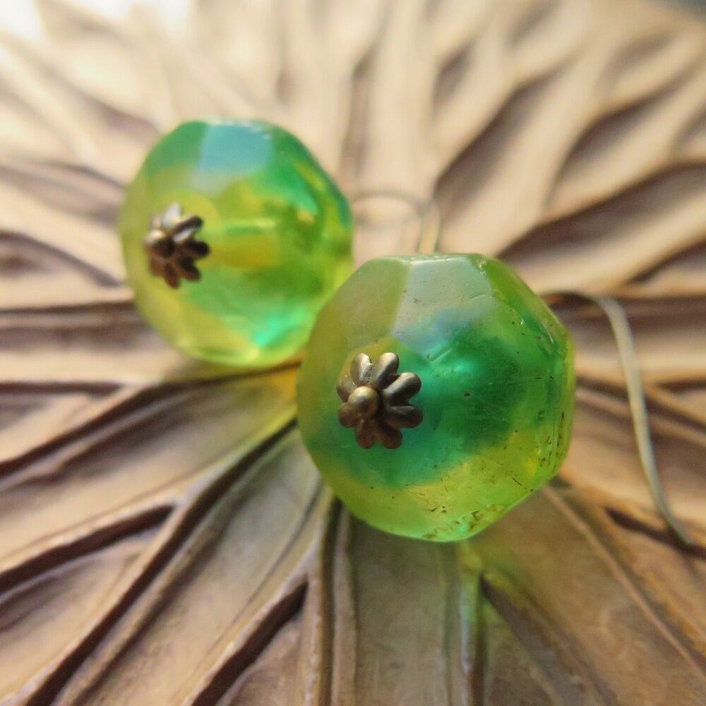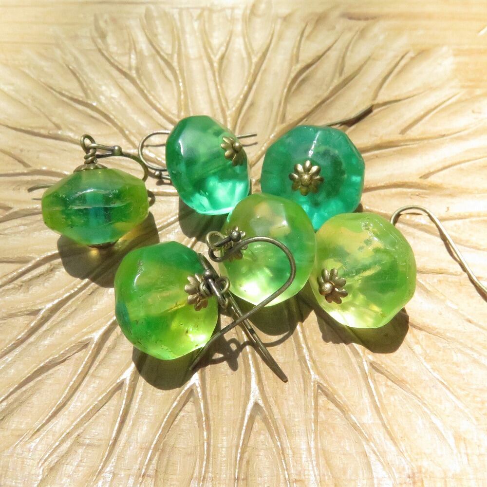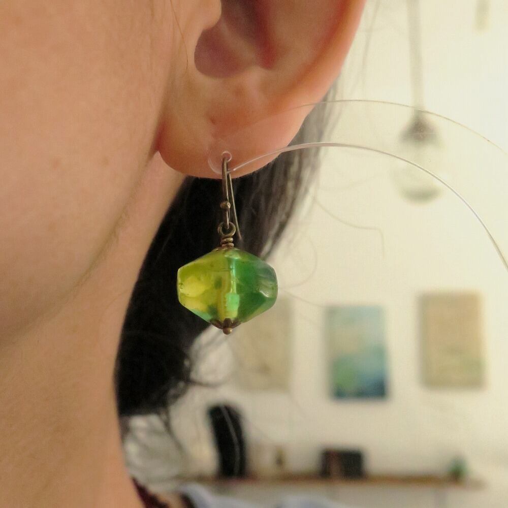ウランガラス バイカラー 緑色 ピアス&イヤリング