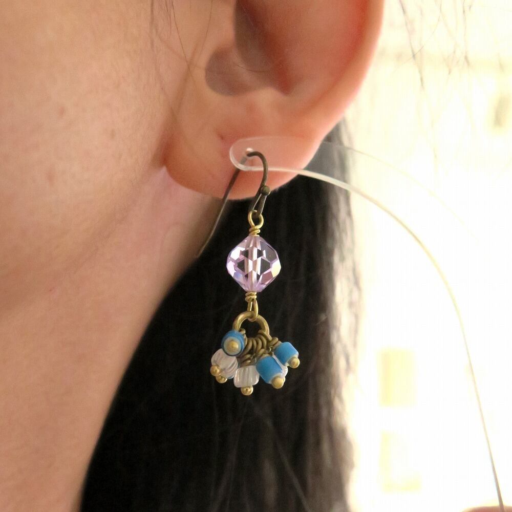 美しいヴェネチアのアンティークビーズと、煌びやかなヴィンテージスワロフスキーのピアス&イヤリング。