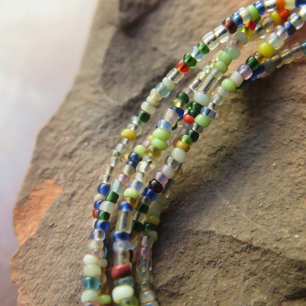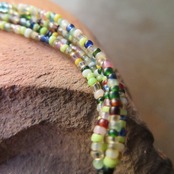 とてもカラフルで、ランダムなビーズの並びが特徴。