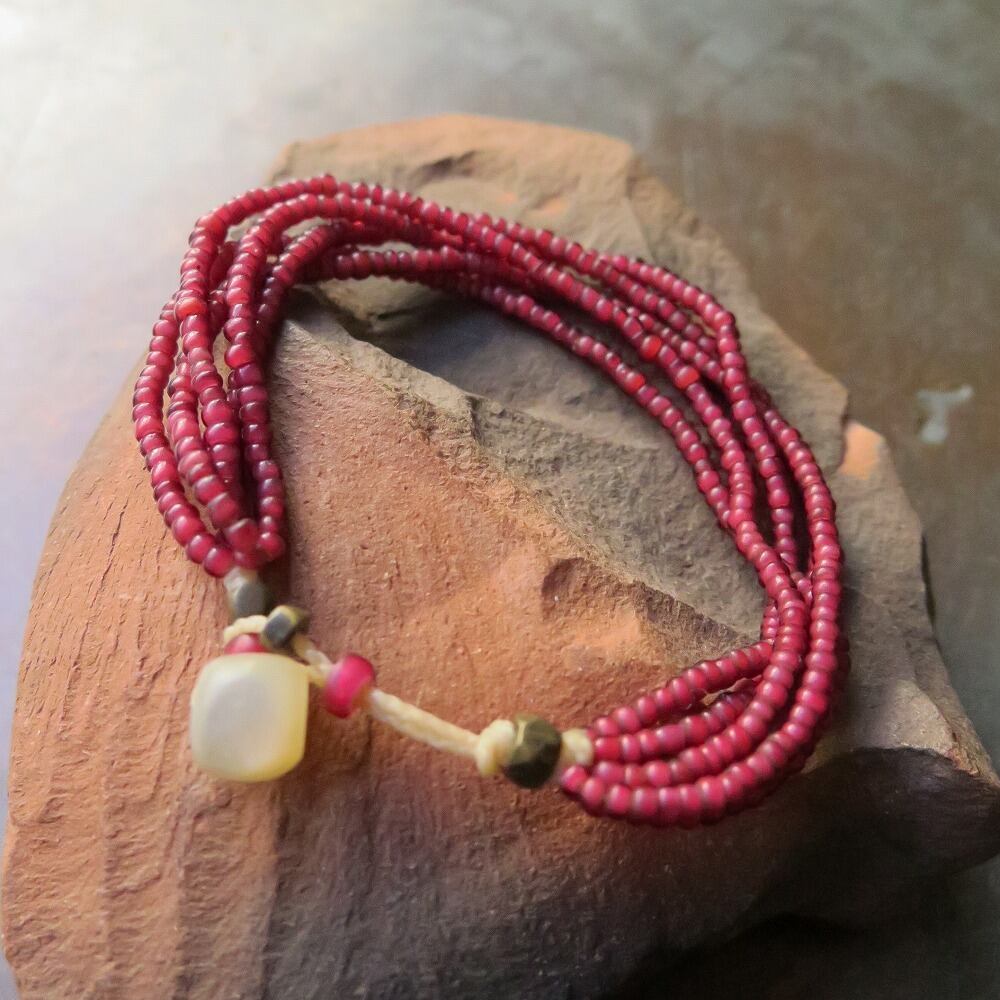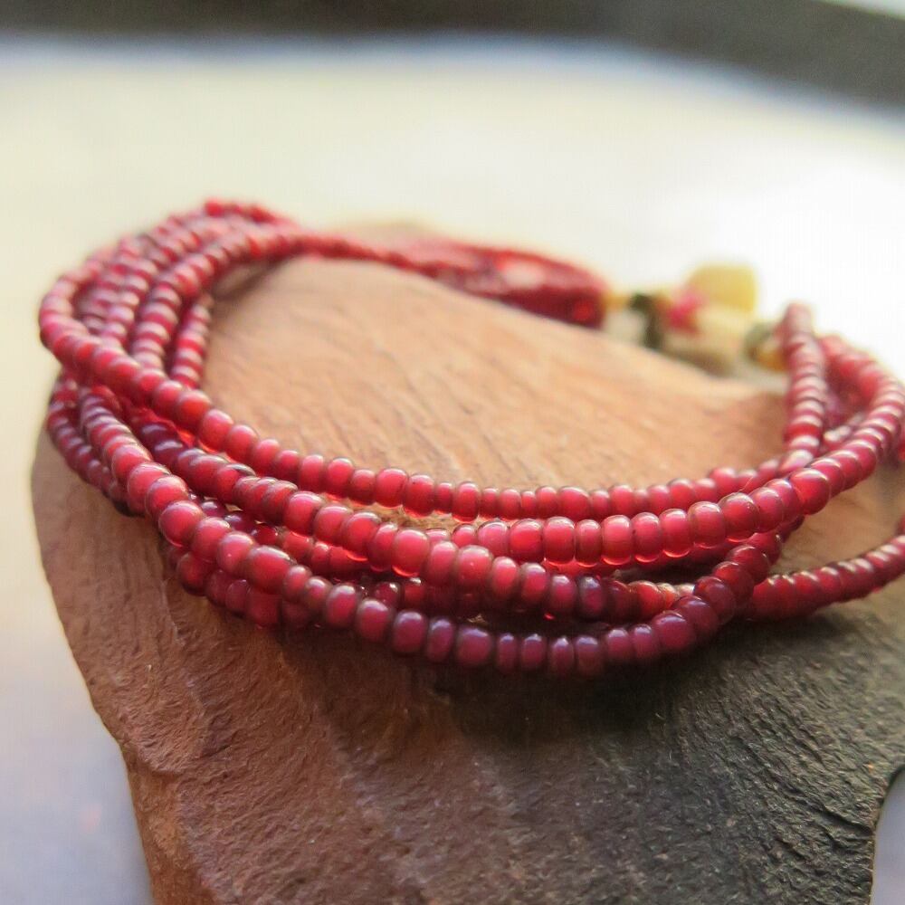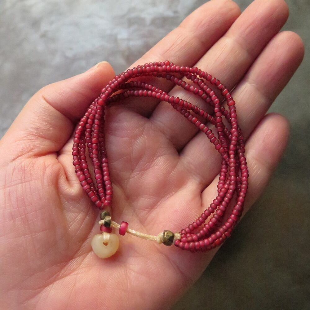 アジアでネックレスとして使われていた、小粒の金赤ホワイトハートを5連のブレスレットにしました。
